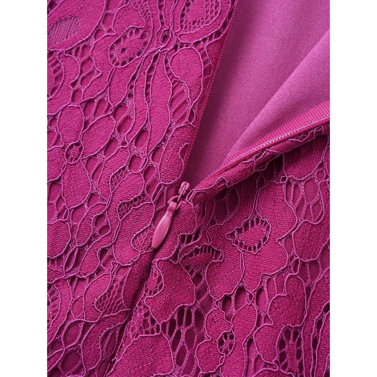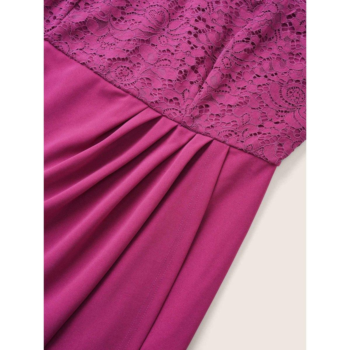 Plus Size Lace Insert Plicated Detail Zipper Cami Dress RedViolet Women Elegant Adjustable Straps Spaghetti Strap Sleeveless Curvy Midi Dress BloomChic 14-16/1X
