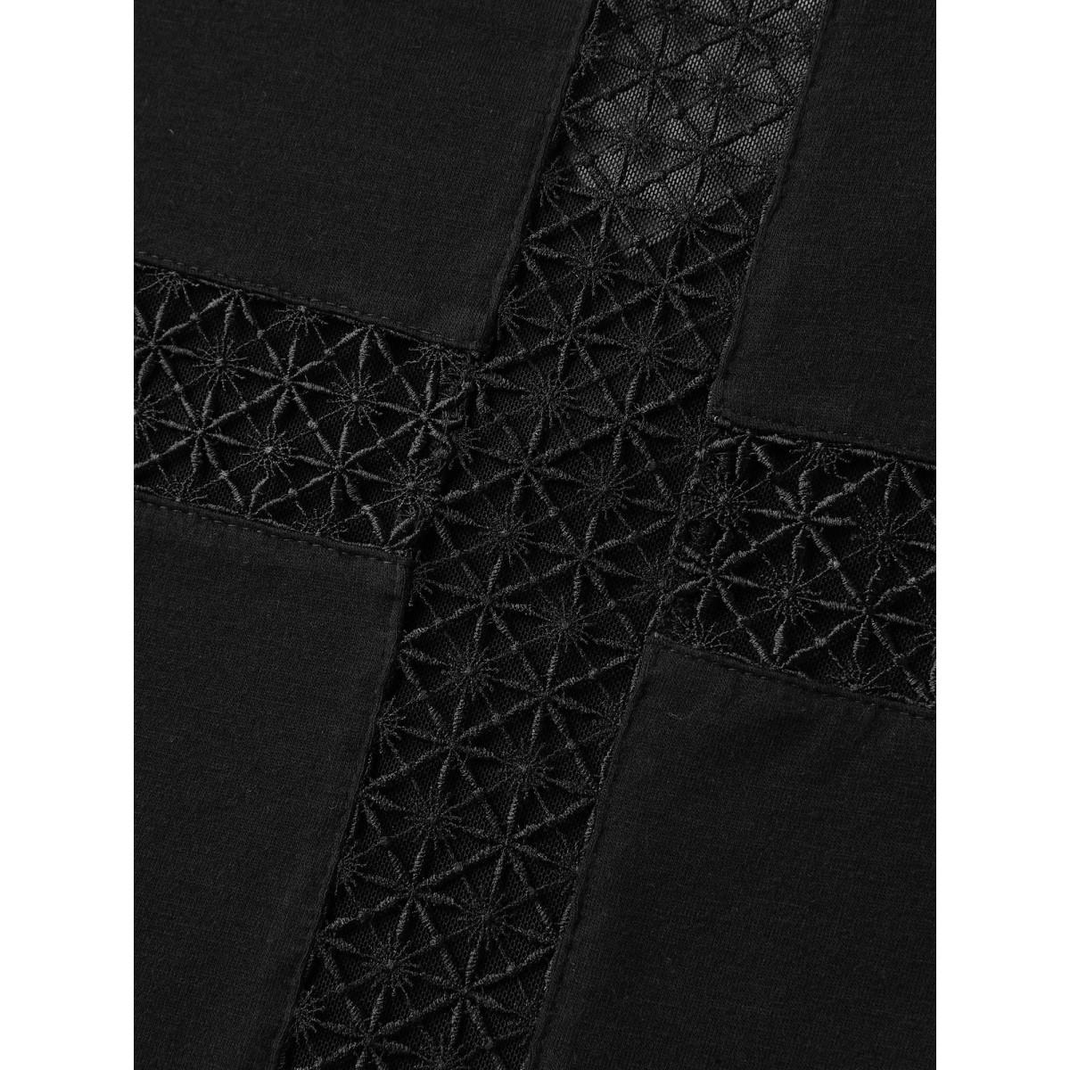 Plus Size Plain Contrast Lace V Neck T-shirt Black Women Elegant Lace Plain V-neck Dailywear T-shirts BloomChic 10/M