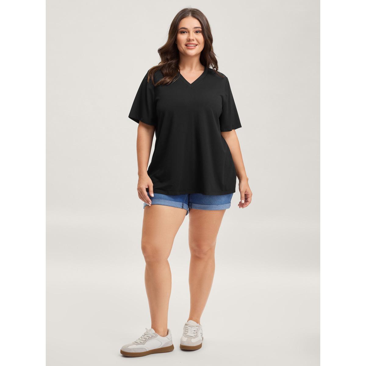 Plus Size Supersoft Fitted V-Neck T-Shirt Black Women Leisure Non Plain V-neck Casual T-shirts BloomChic 26/4X