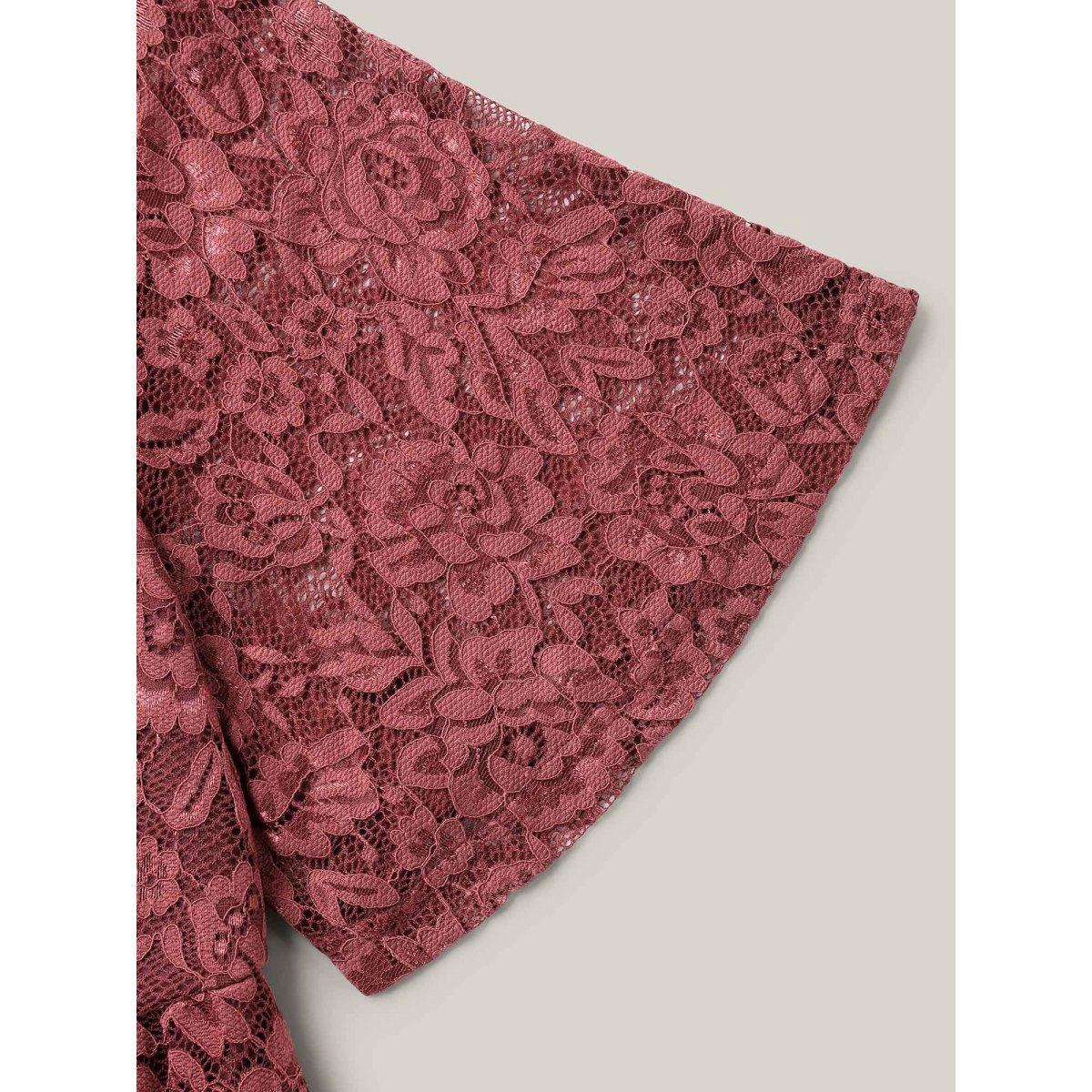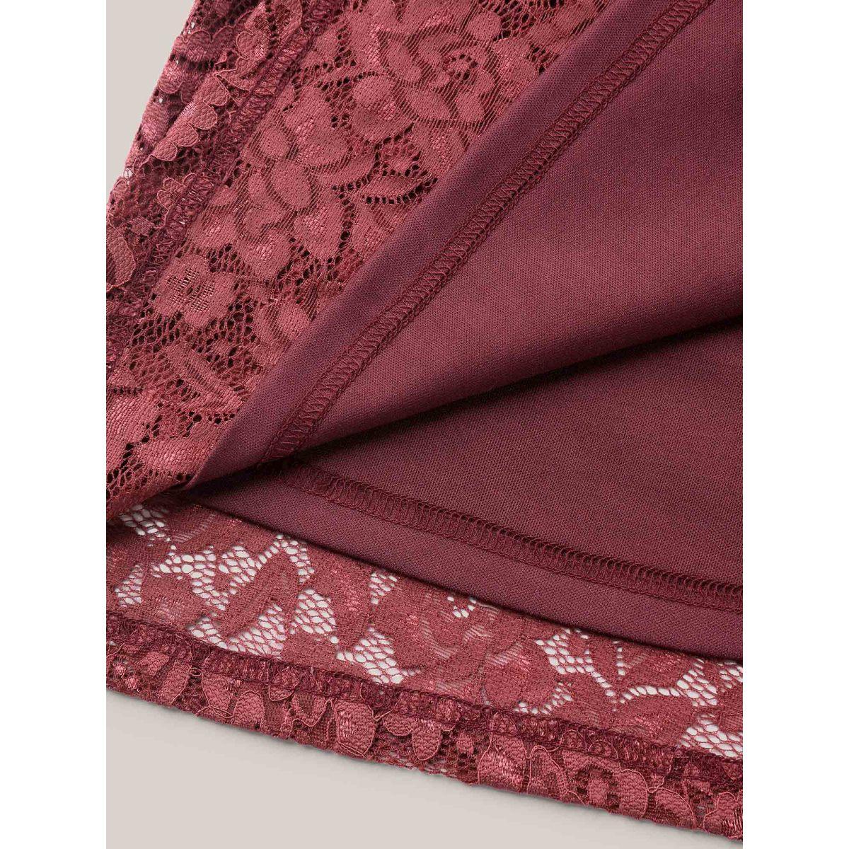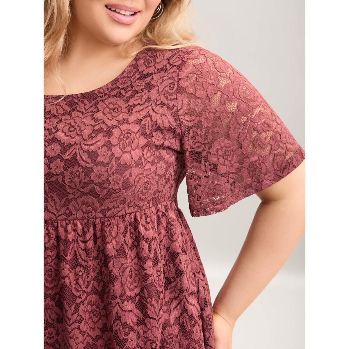 Plus Size Lace Round Neck Babydoll Top Russet Women Casual Gathered Round Neck Bodycon Everyday T-shirts BloomChic 12/L