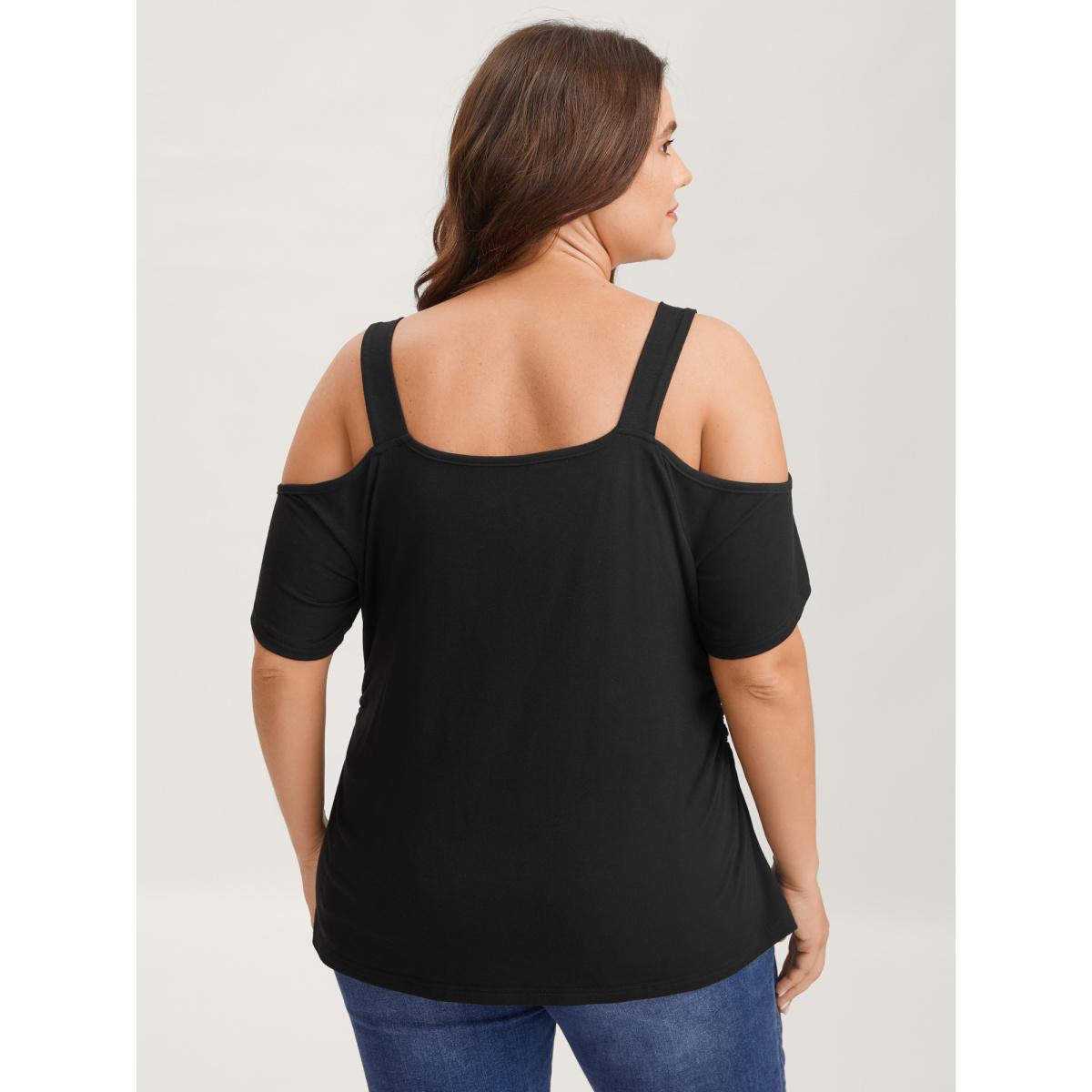 Plus Size Supersoft Solid Cut-Out Shoulder T-Shirt Black Women Timeless Cut-Out Round Neck Elegant T-shirts BloomChic 12/L