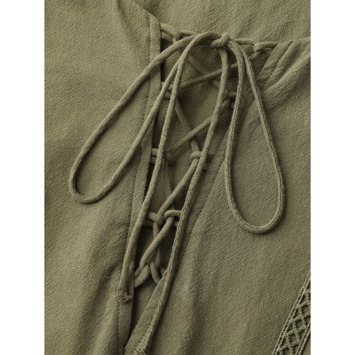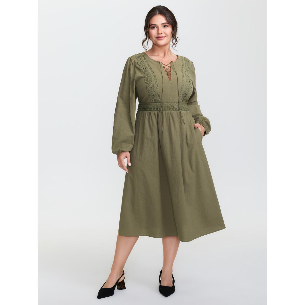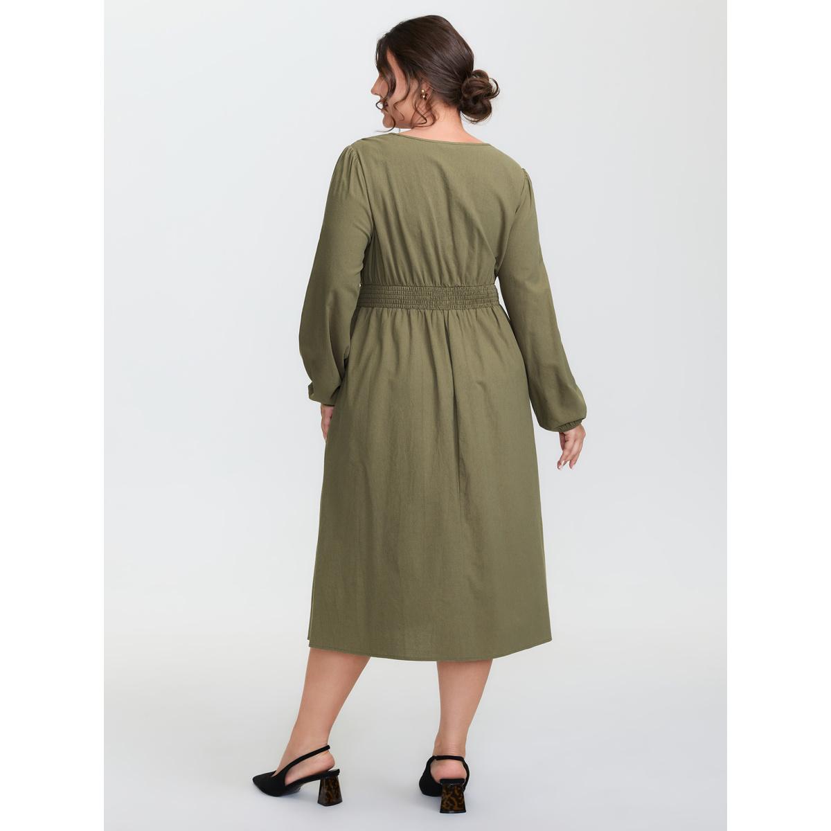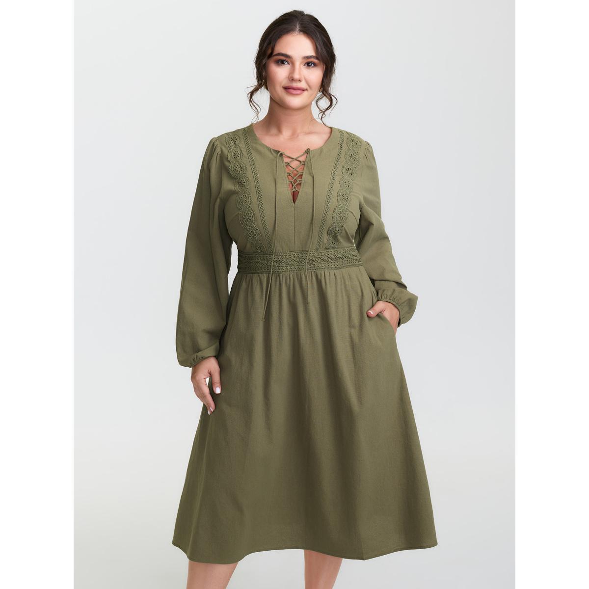 Plus Size Lace Trim Shirred Back Pockets Midi Dress Moss Women Timeless V-neck Long Sleeve Curvy BloomChic 14-16/1X