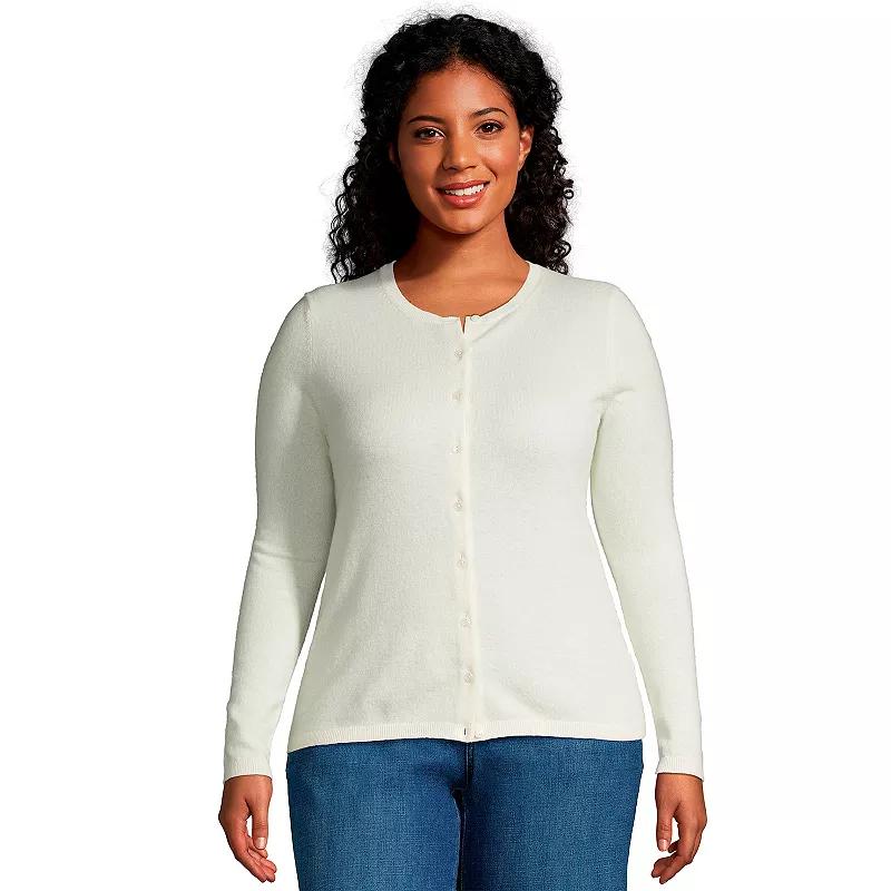 A luxurious , everyday staple. This womens Lands End cardigan sweater is made with supersoft, lasting cashmere that gets soft the more that you wear it, making it a casual classic. Soft, lush 2 ply cashmere Button front with grosgrain-trimmed placket Long sleeves Ribbed trimFIT & SIZING Shaped waist detail for a feminine fit Falls to mid hipFABRIC & CARE Cashmere Hand wash or Dry clean Imported Size: 2X. Color: White. Gender: female. Age Group: adult.