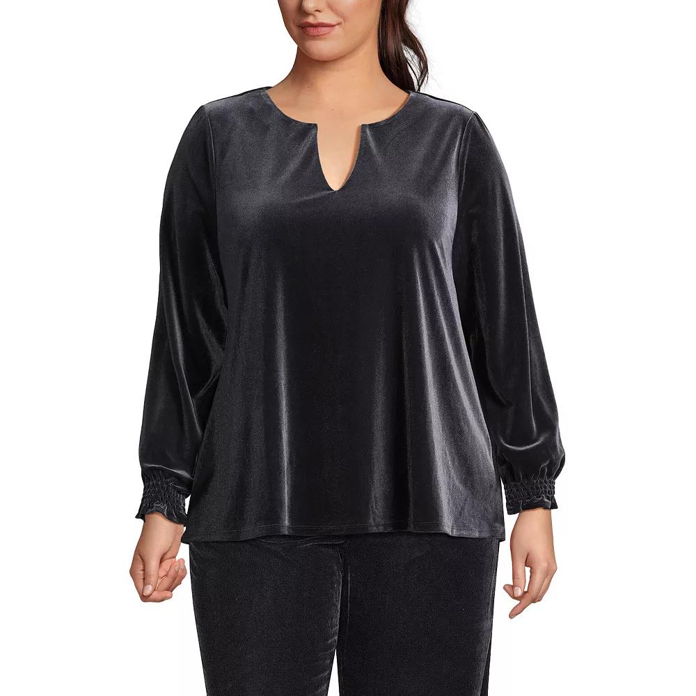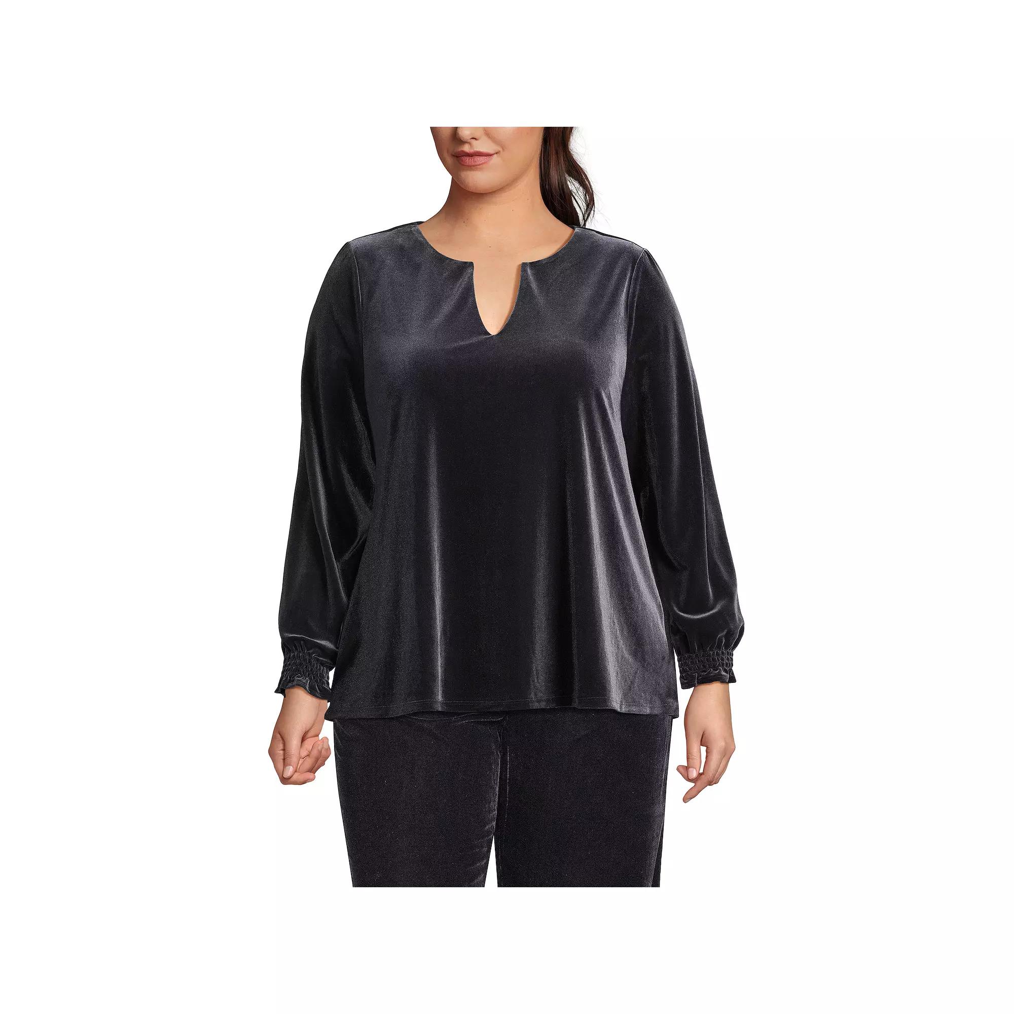 Made of a beautifully soft and drapey velvet fabric, this top is perfect for all your holiday events. With a clean notch neckline and delicate smocking at the shoulders and on the sleeves, it will add elegance and sophistication to your look. Click on this WOMEN'S GUIDE to find the perfect fit and more!Made of a beautifully soft and drapey velvet fabric, this top is perfect for all your holiday events. With a clean notch neckline and delicate smocking at the shoulders and on the sleeves, it will add elegance and sophistication to your look. Click on this WOMEN'S GUIDE to find the perfect fit and more!FEATURES Splitneck Long sleeves Smocking at shoulders and wrists with ruffle detail No closure - pullover styling Velvet constructionFIT & SIZING Flowy fit 28-in. length from shoulder to hemFABRIC & CARE Polyester, spandex Machine wash Imported Size: 3X. Color: Black. Gender: female. Age Group: adult.