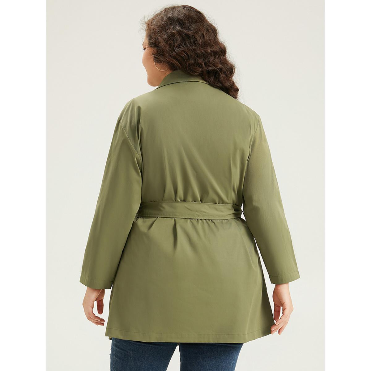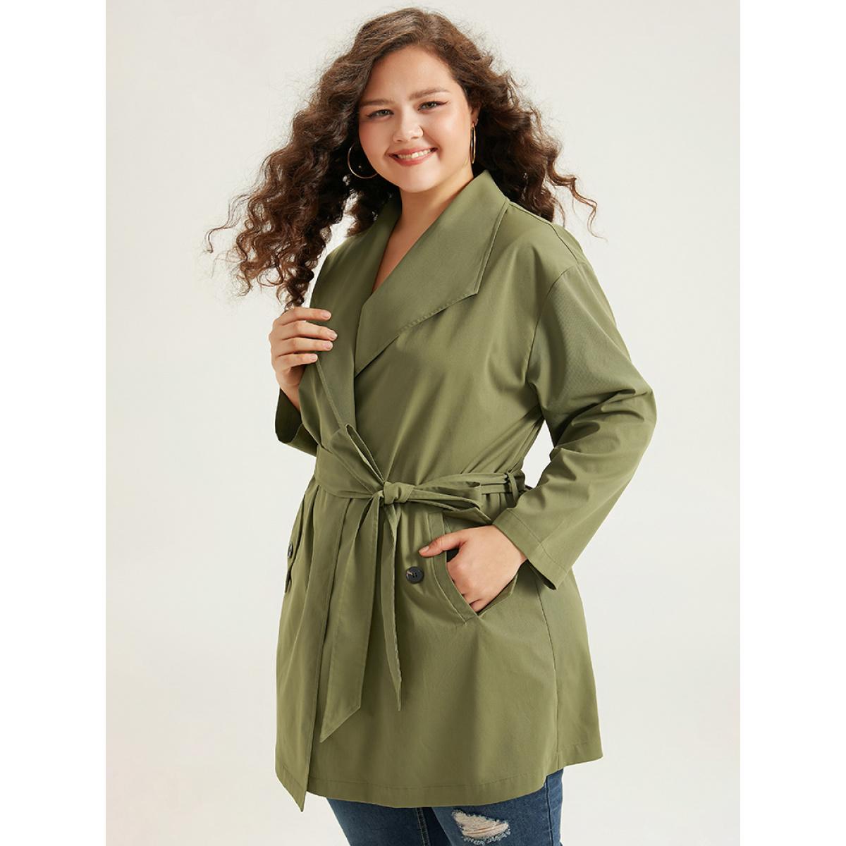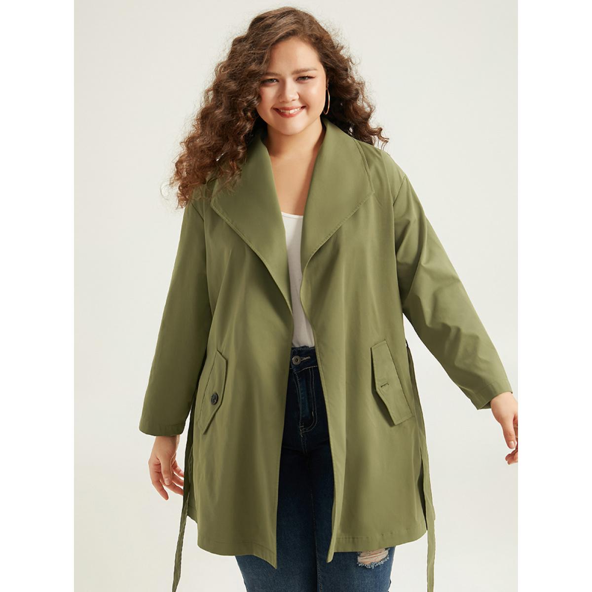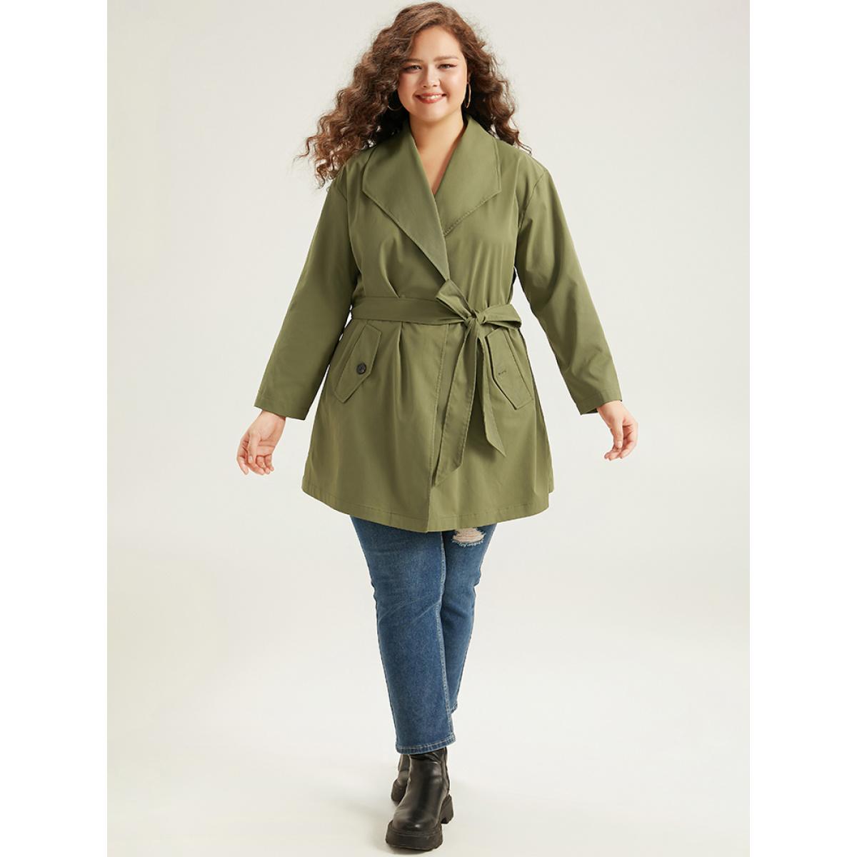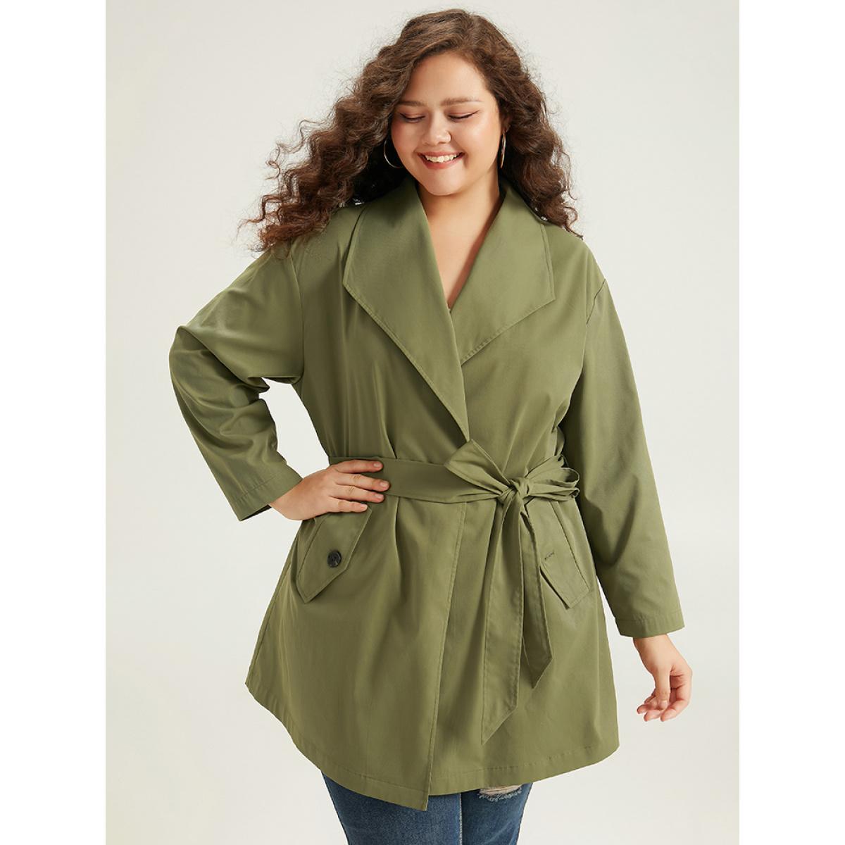 Plus Size Lapel Collar Belted Slant Pocket Coat Women Sage Casual Plain Ladies Everyday Winter Coats BloomChic 10/M