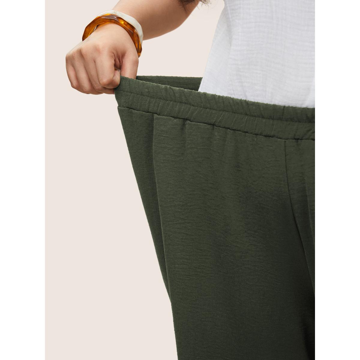 Plus Size Solid Button Elastic Waist Pocket Loose Pants Women ArmyGreen Elegant High Rise Dailywear Pants BloomChic 30/6X