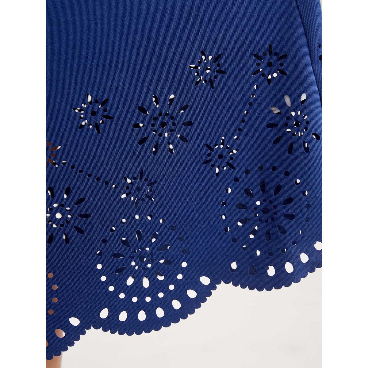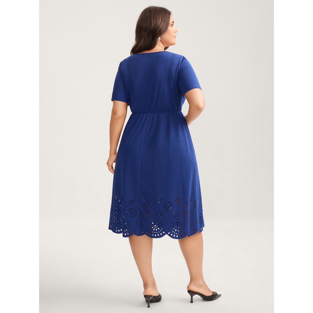 Plus Size Laser Cut Hem Square Neck Midi Dress Navy Women Knit Dresses Bloomchic 28/5X