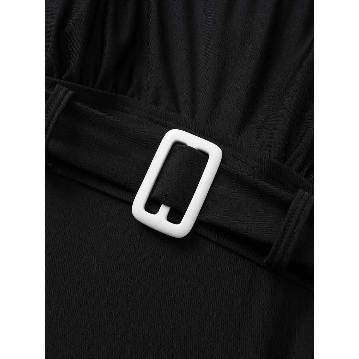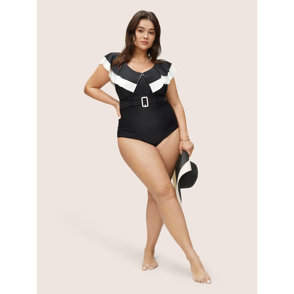 Plus Size Layered Ruffle Trim Belted One Piece Swimsuit Women's Swimwear Black Beach Ruffles Curve Bathing Suits High stretch One Pieces BloomChic 28/5X