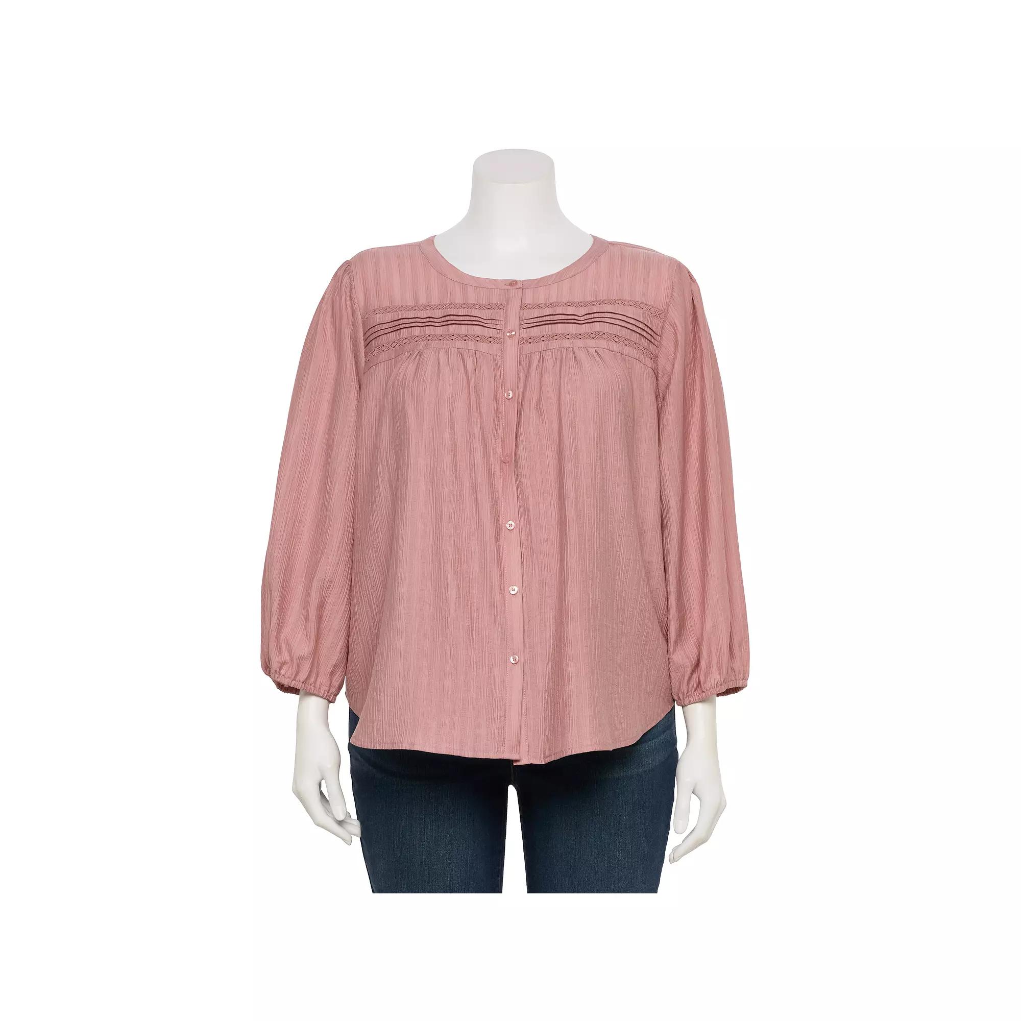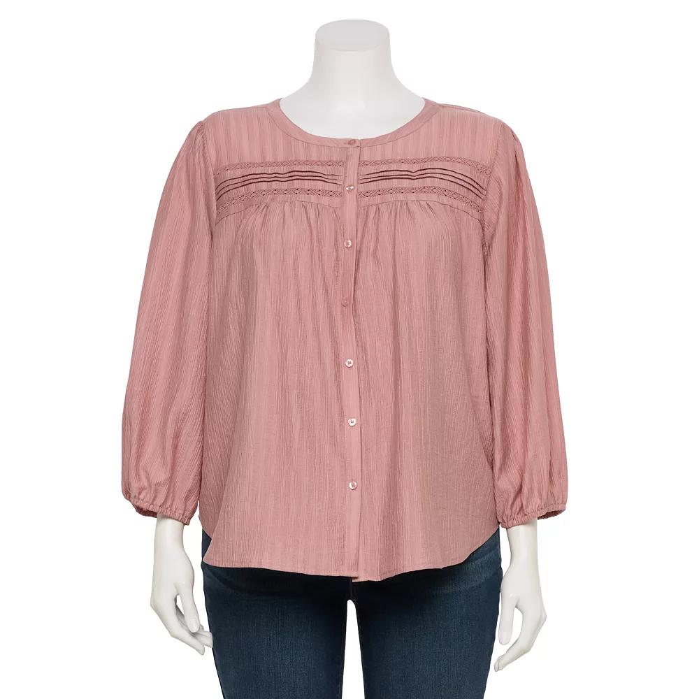 Elevate your wardrobe with this charming button front top from LC Lauren Conrad, designed for a flattering fit that complements any figure. Featuring delicate lace inserts and versatile styling possibilities, it pairs beautifully with jeans for casual outings or skirts for a dressier look, making it a must-have for any occasion. Click on this WOMENS GUIDE to find the perfect fit and more!Elevate your wardrobe with this charming button front top from LC Lauren Conrad, designed for a flattering fit that complements any figure. Featuring delicate lace inserts and versatile styling possibilities, it pairs beautifully with jeans for casual outings or skirts for a dressier look, making it a must-have for any occasion. Click on this WOMENS GUIDE to find the perfect fit and more!FEATURES Button front 3/4-length balloon sleeves Partially lined U-neckFIT & SIZING 27 1/2-in. length from shoulder to hemFABRIC & CARE Body: lyocell, rayon Lining: polyester Machine wash Imported NA Size: 1X. Color: Lavender Silk. Gender: female. Age Group: adult.
