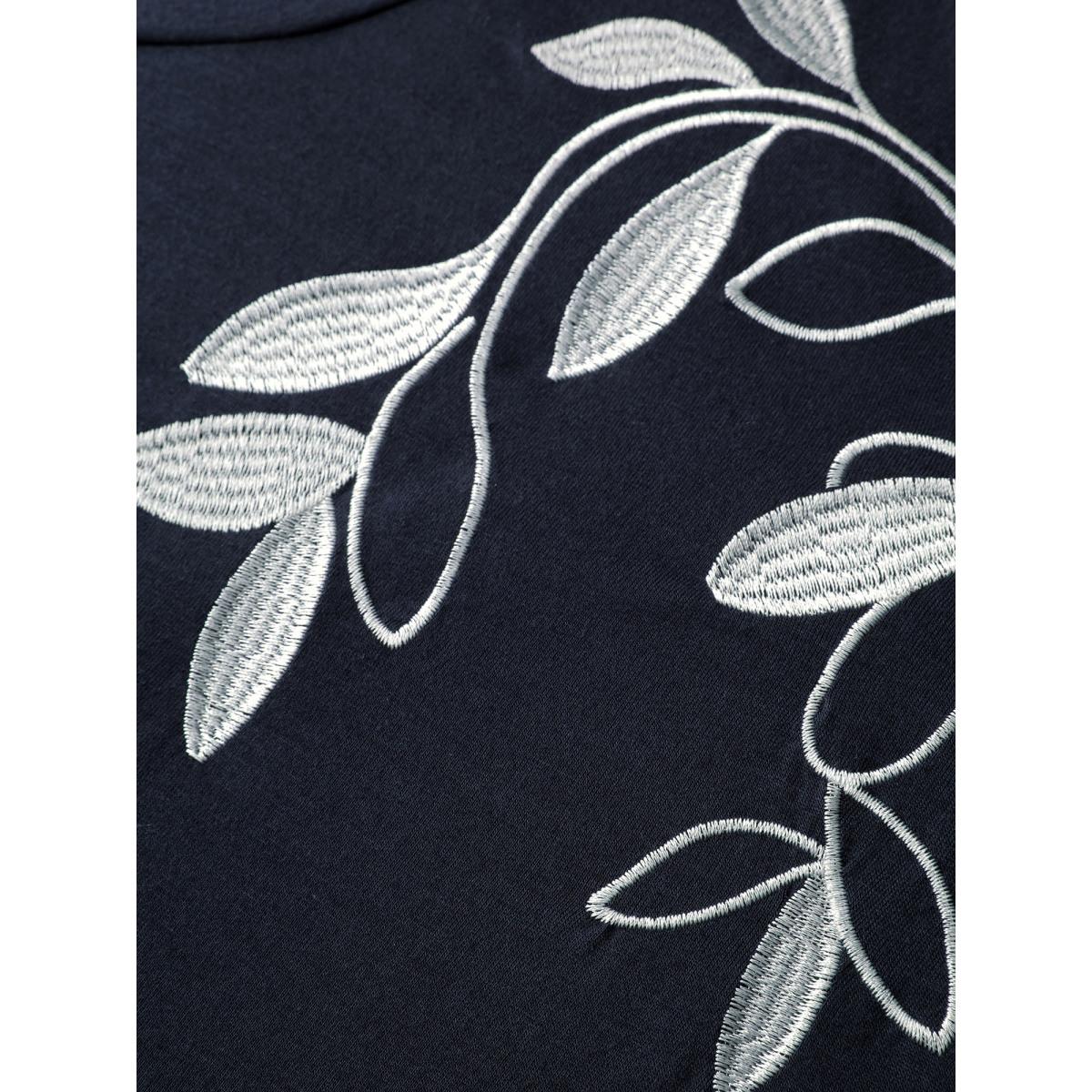 Plus Size Leaf Embroidery Round Neck Split T-Shirt Midnight Women Leisure Round Neck Casual T-shirts BloomChic 26/4X Product Image