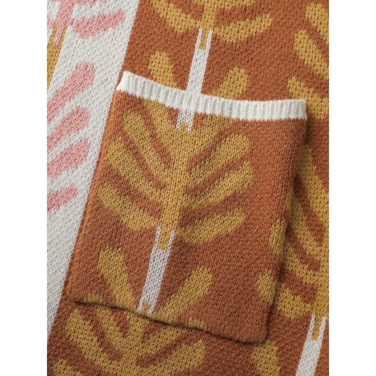 Plus Size Leaf Jacquard Print Contrast Knit Cardigan Mustardyellow Women Playful Loose Long Sleeve Casual Cardigans BloomChic 30/6X