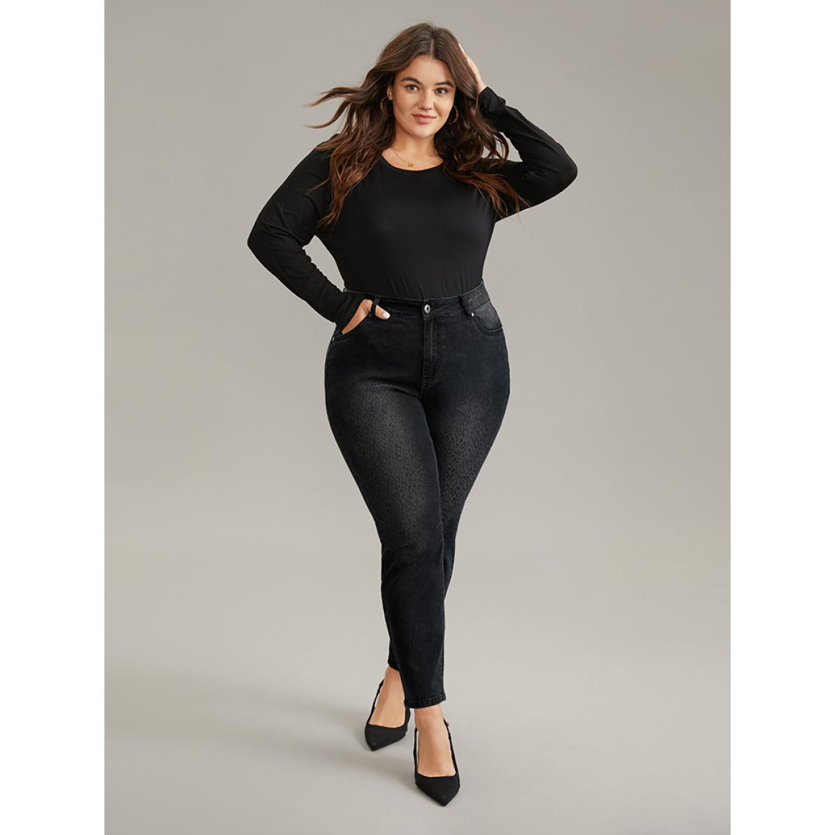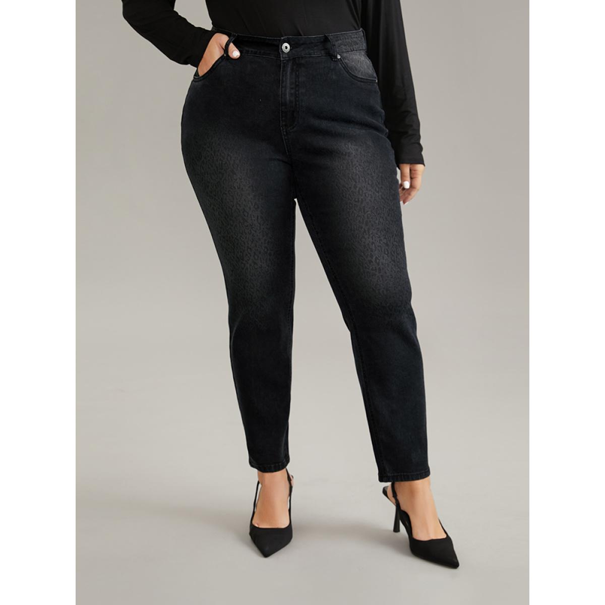 Plus Size Leopard High Stretch Skinny Jeans Women Black Casual Leopard Zipper High stretch Pocket Jeans BloomChic 14/1X