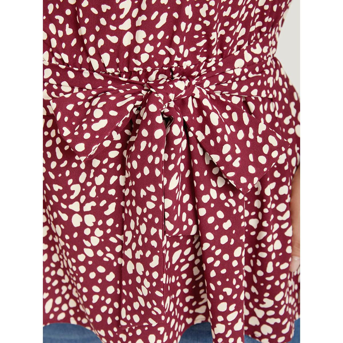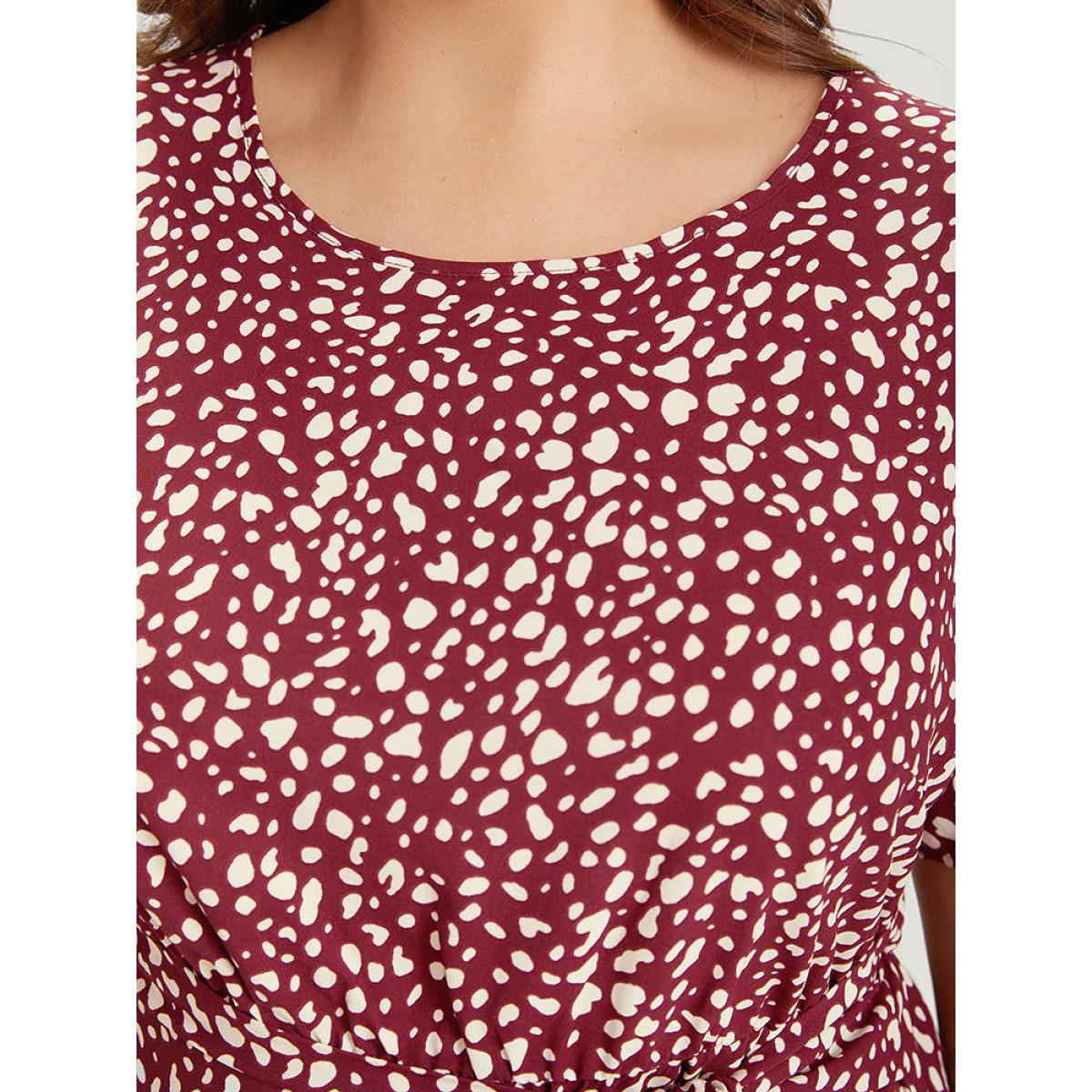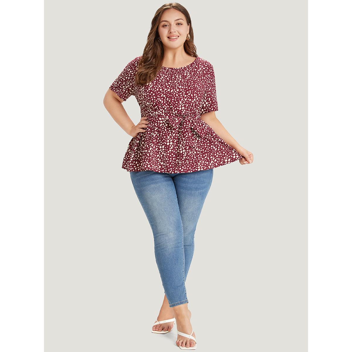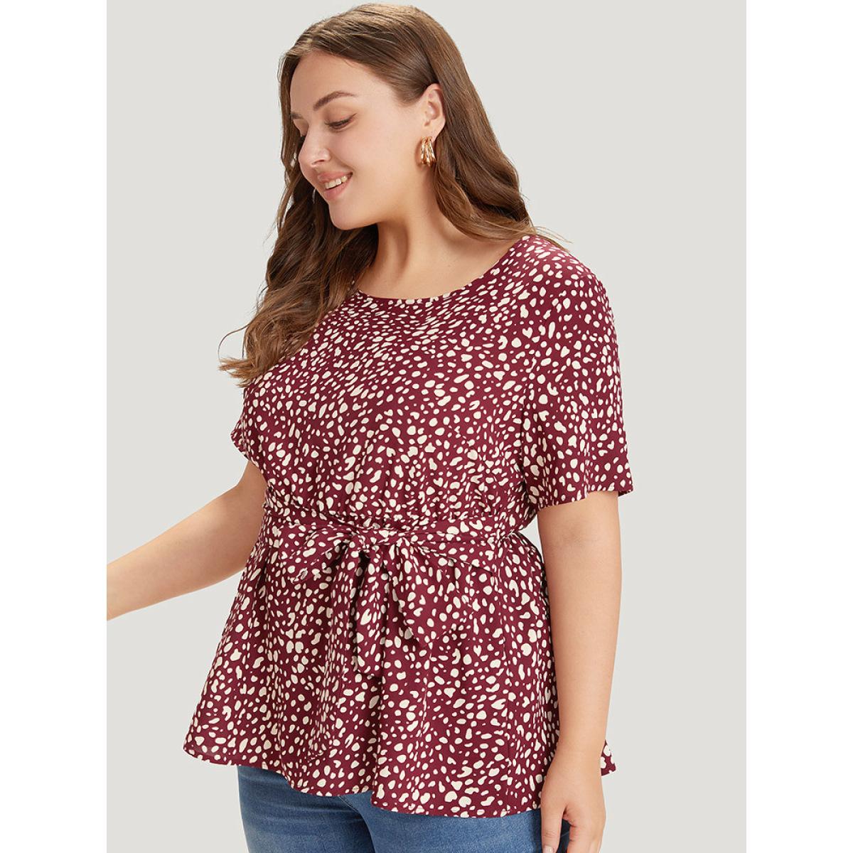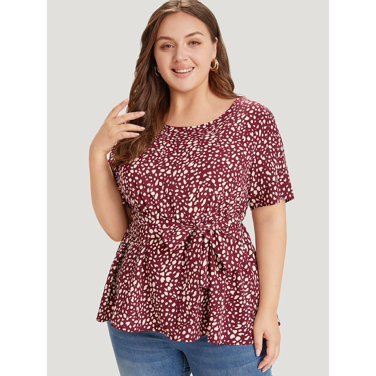 Plus Size Leopard Leopard Knotted Flutter Hem Crew Neck Blouse Women Elegant Short sleeve Round Neck Dailywear Blouses BloomChic 12/L