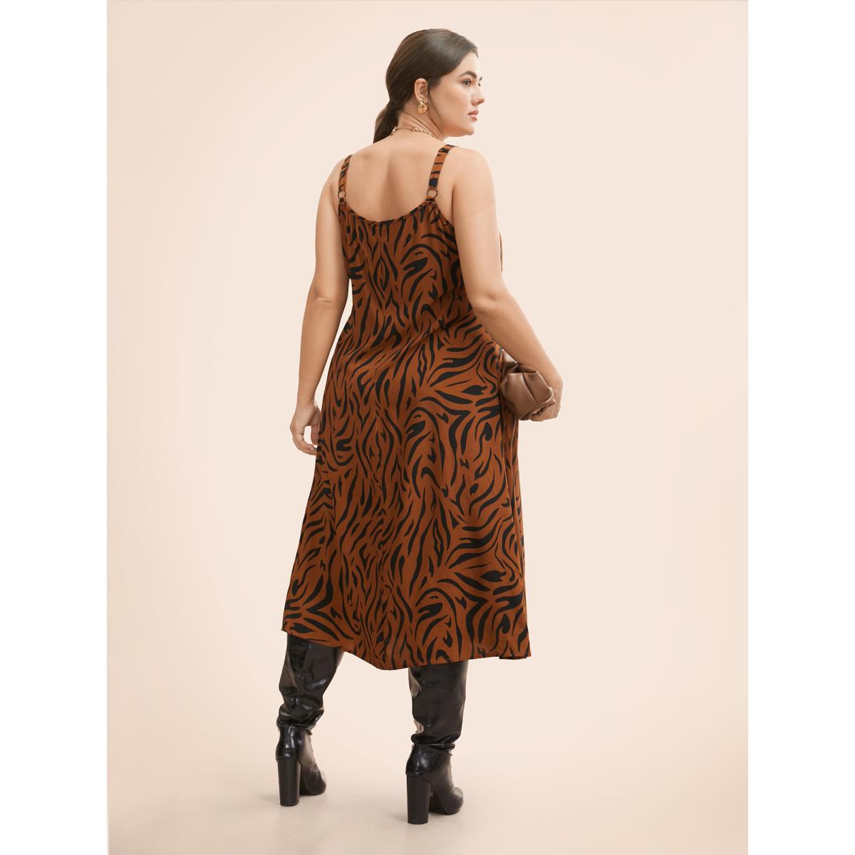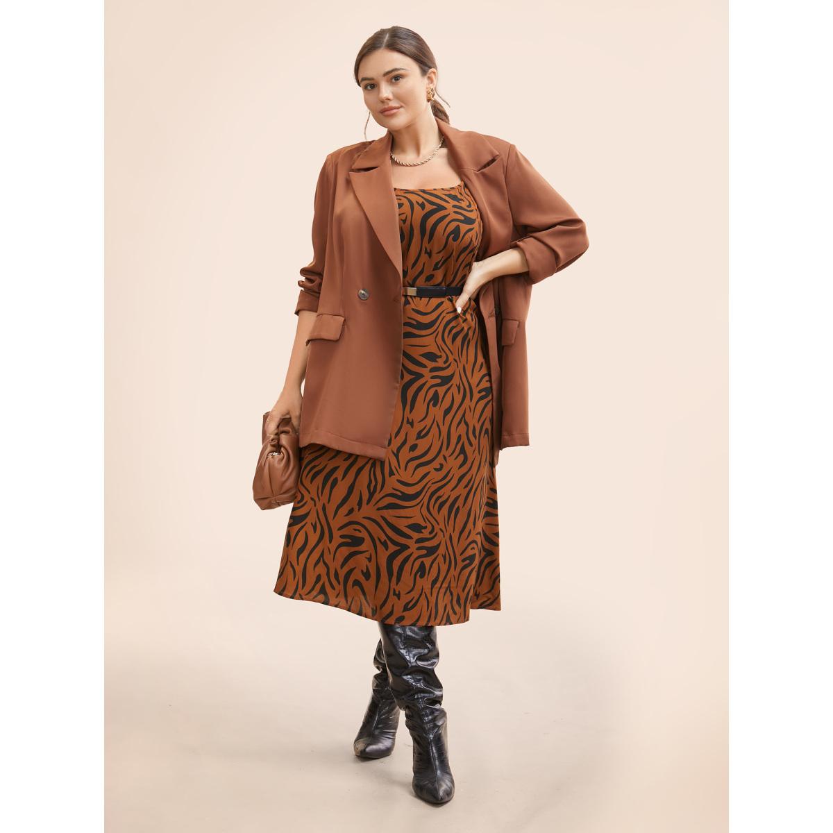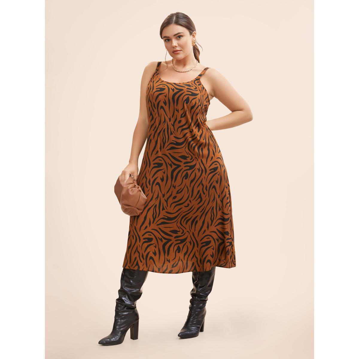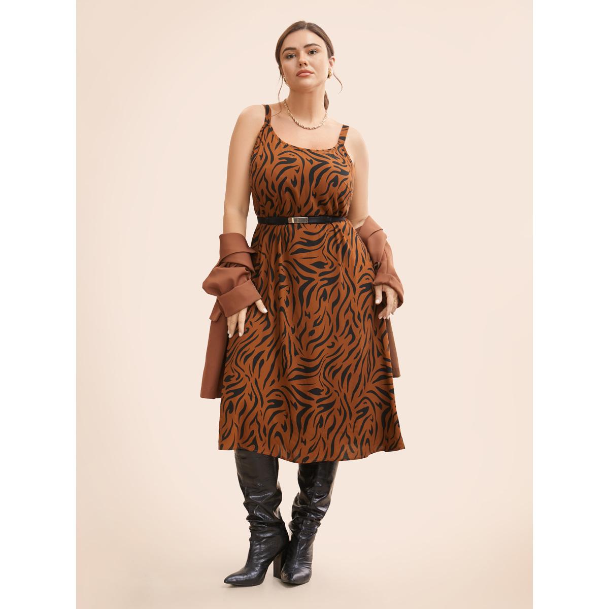 Plus Size Leopard Print Cami Midi Dress Browncoffeecolor Women Workwear Essentials Non U-neck Sleeveless Curvy BloomChic 18-20/2X