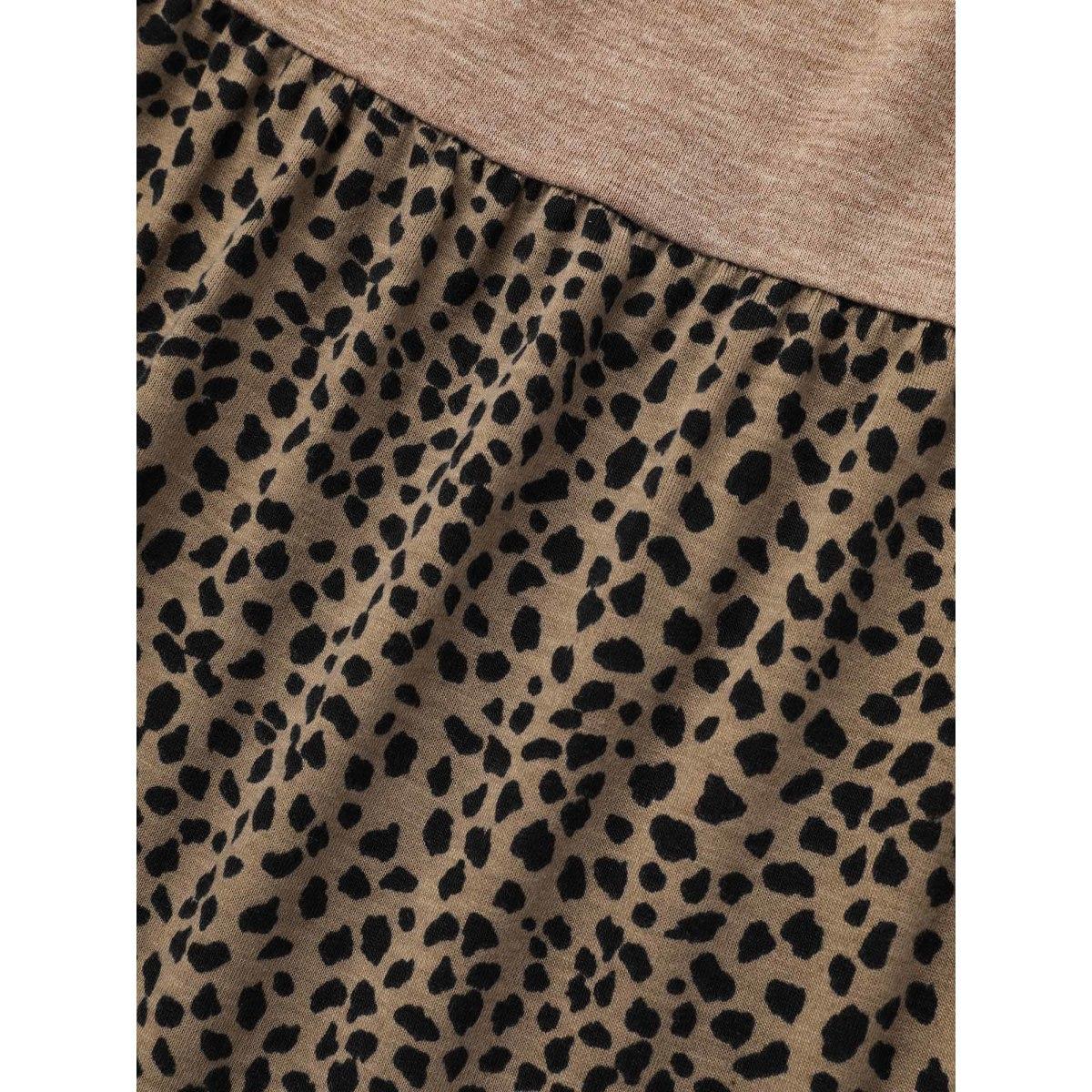Plus Size Leopard Print Color-Block Pockets Mini Dress Multicolor Women Leisure Patchwork Knit Dresses Bloomchic 18-20/2X