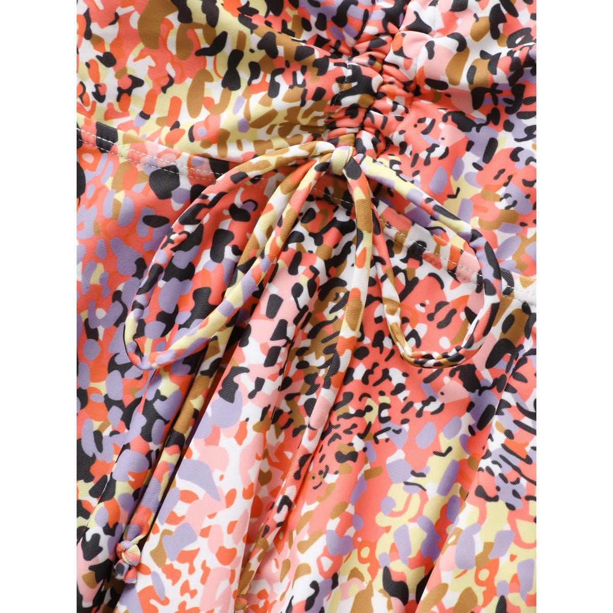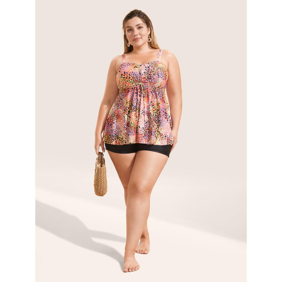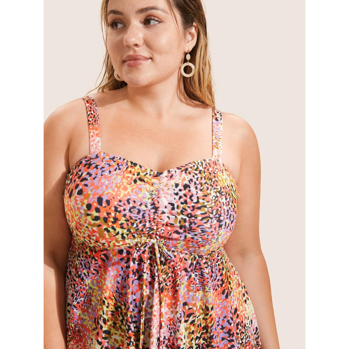Plus Size Leopard Print Knotted Front Swim Top Women's Swimwear Multicolor Resort Gathered High stretch Skinny Heart neckline Curve Swim Tops BloomChic 18-20/2X