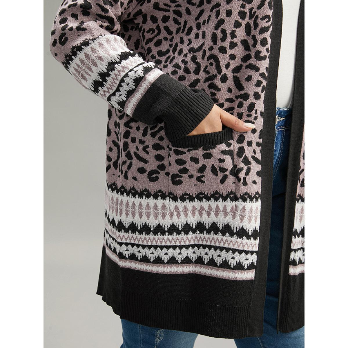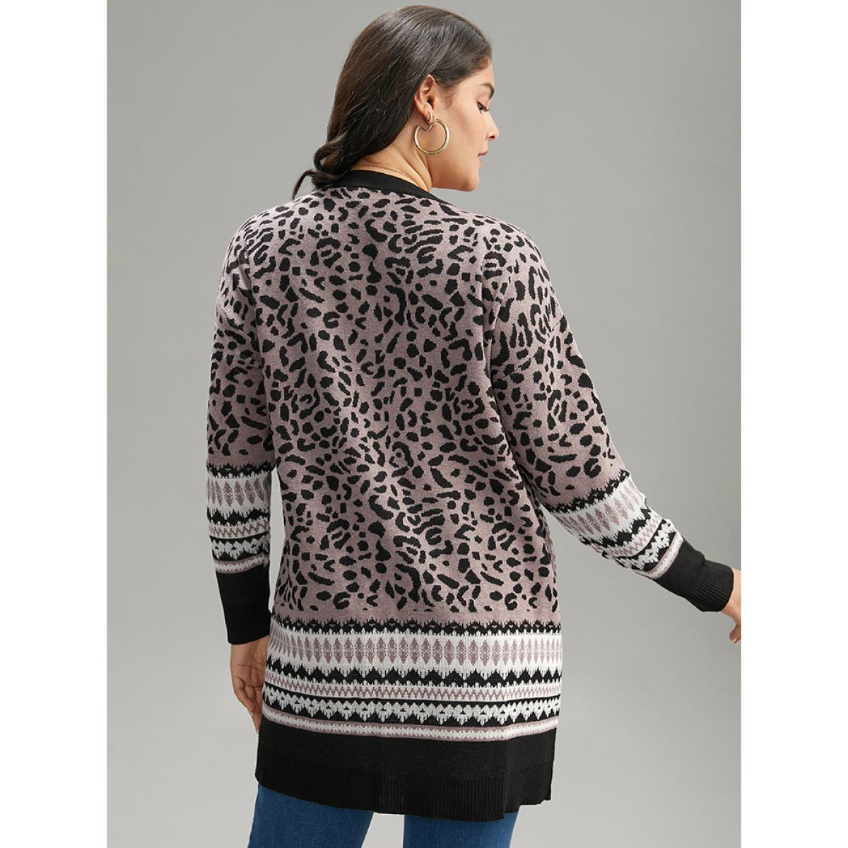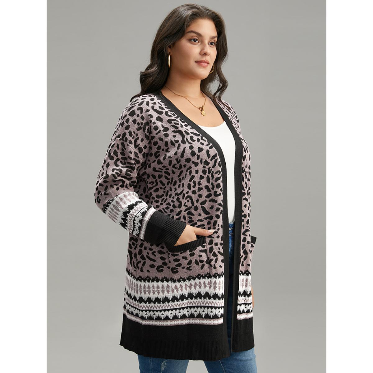 Plus Size Leopard Print Pocket Contrast Trim Cardigan Leopard Women Casual Long Sleeve Dailywear Cardigans BloomChic 18-20/2X Product Image