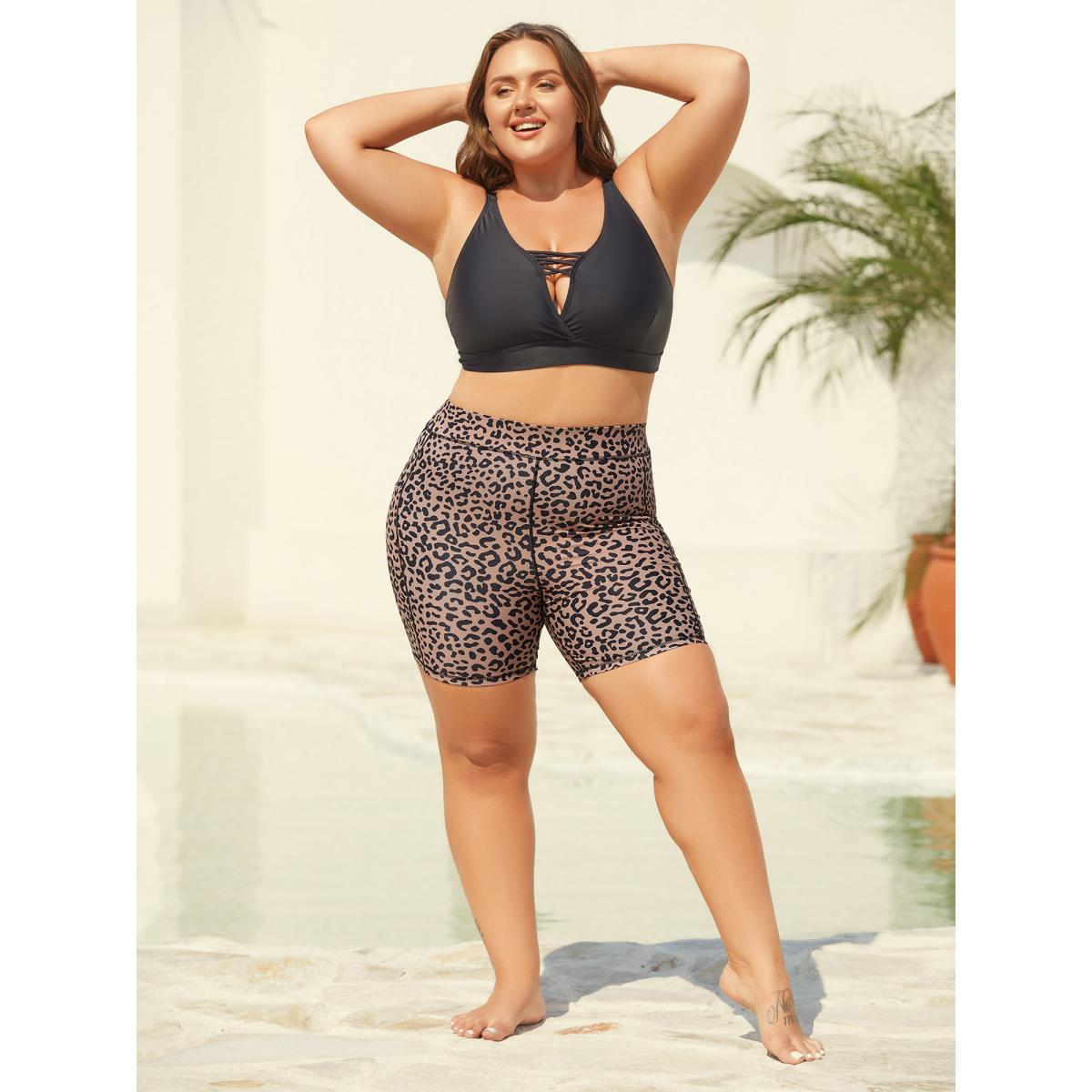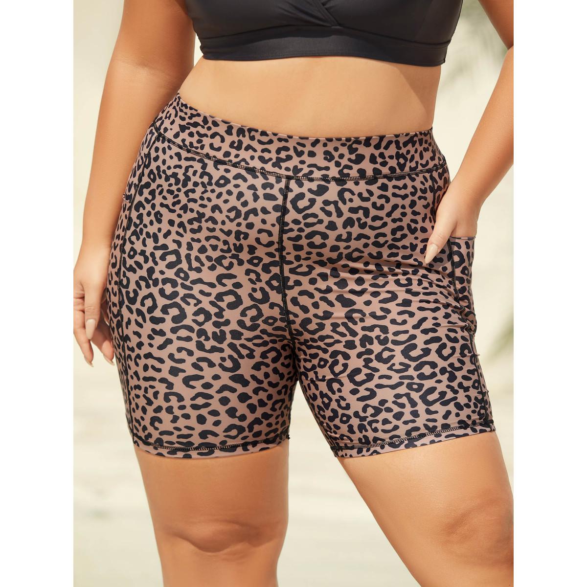Plus Size Leopard Print Pockets Swim Bottoms Women's Swimwear Leopard Beach High stretch Skinny Mid Rise Patch pocket Curve Swim Bottoms BloomChic 14-16/1X