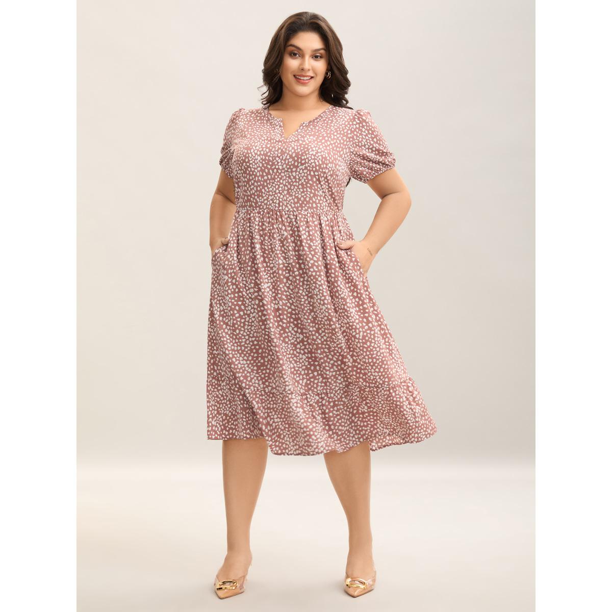 Plus Size Leopard Print Pockets Tiered Midi Dress Dirtypink Women V-neck Short sleeve Curvy BloomChic 18-20/2X