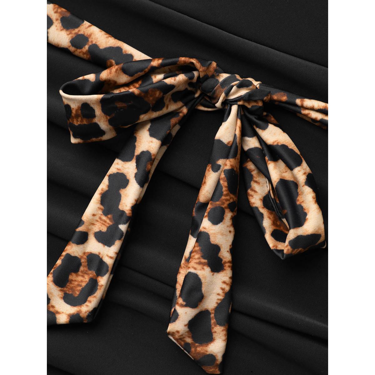 Plus Size Leopard Print Tiered Ruffles Belted One-Piece Swimsuit Women's Swimwear Leopard Beach Tie knot Curve Bathing Suits High stretch One Pieces BloomChic 14-16/1X