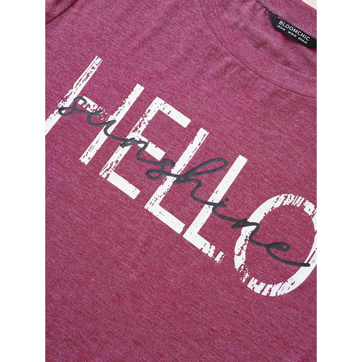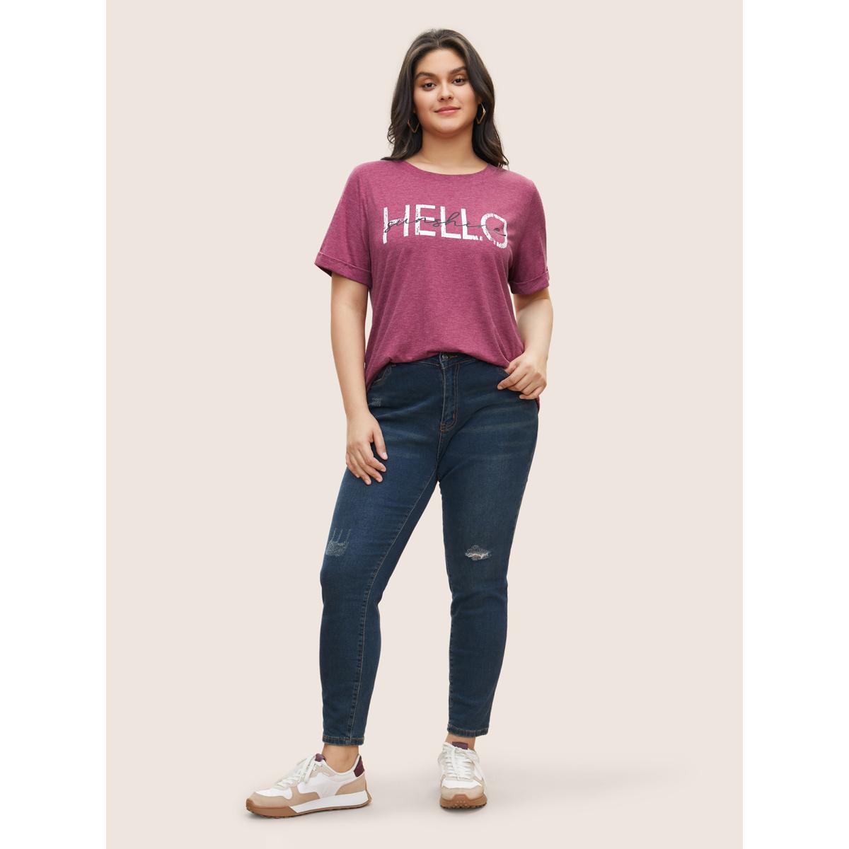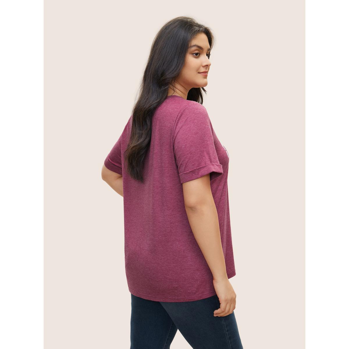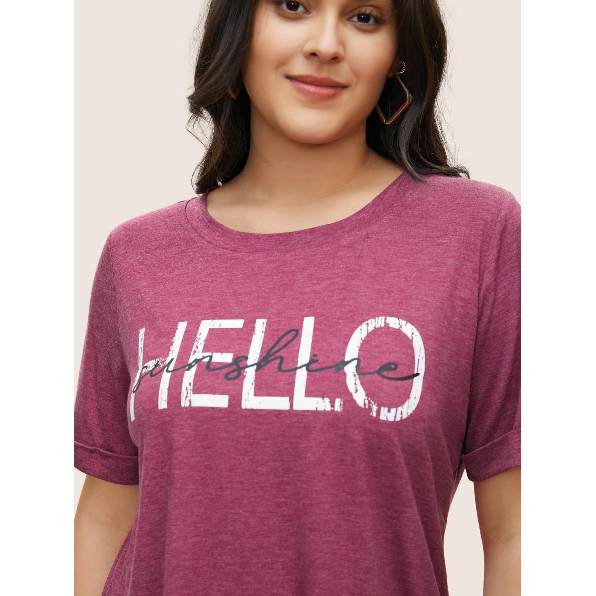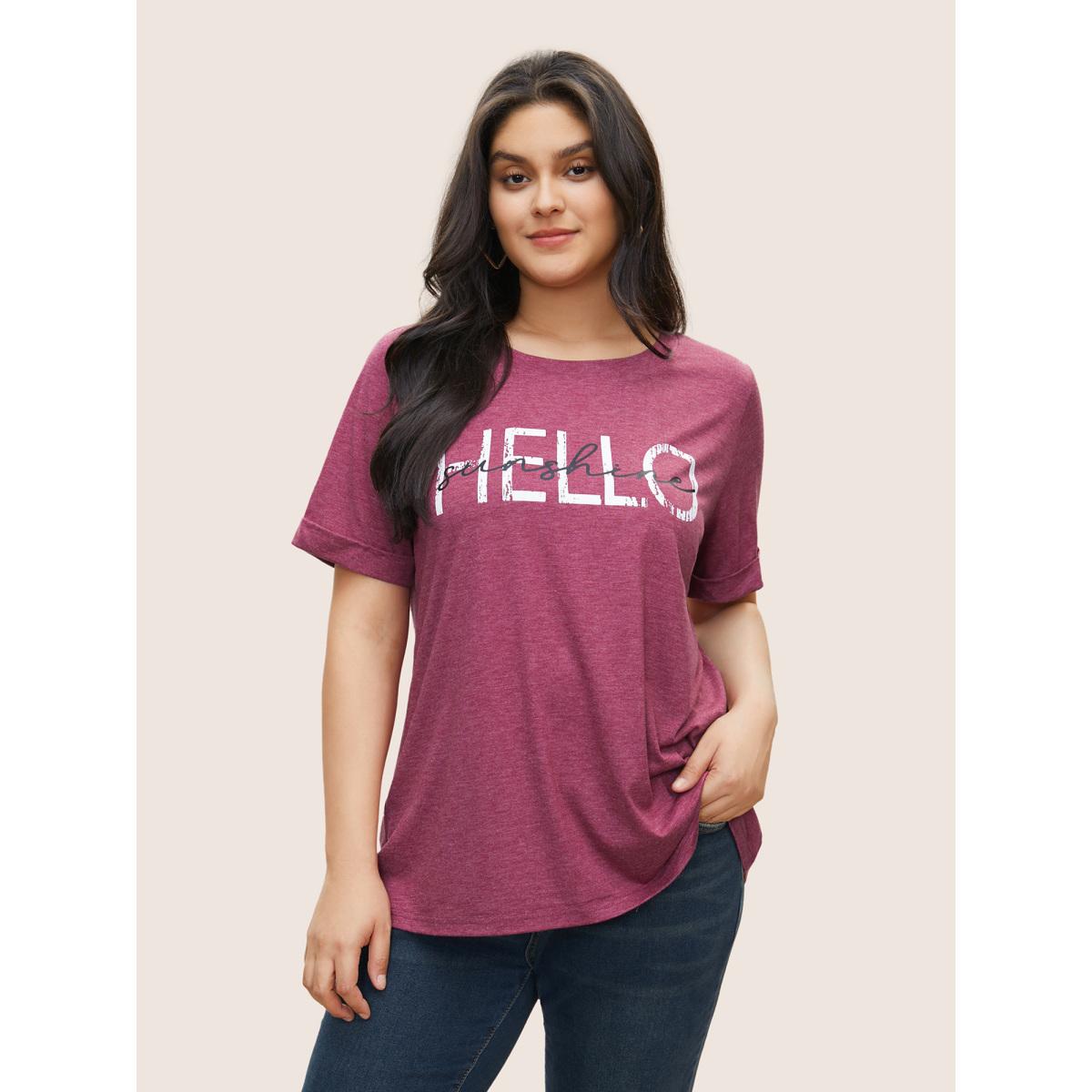 Plus Size Letter Print Round Neck Roll Sleeve T-shirt Burgundy Women Casual Non Positive slogan Everyday T-shirts BloomChic 18-20/2X