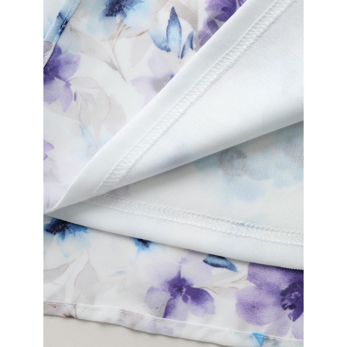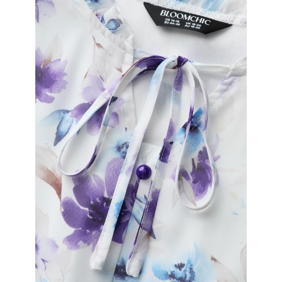 Plus Size LightBlue Chiffon Floral Spliced Neckline Tie Blouse Women Romantic Extra Long Sleeve Flat collar with V-notch Elegant Blouses BloomChic 26/4X