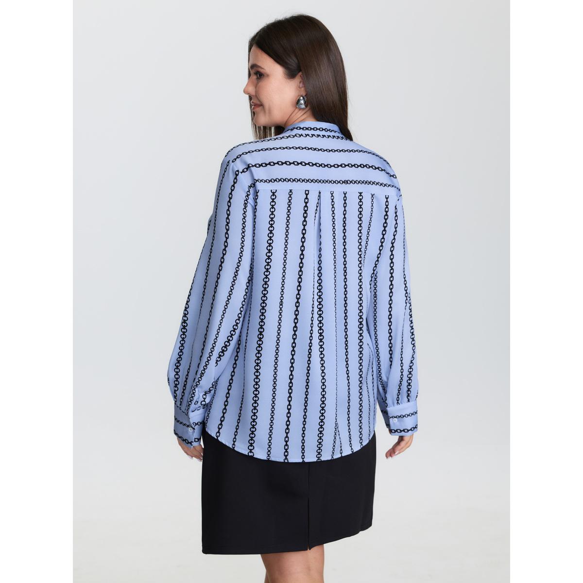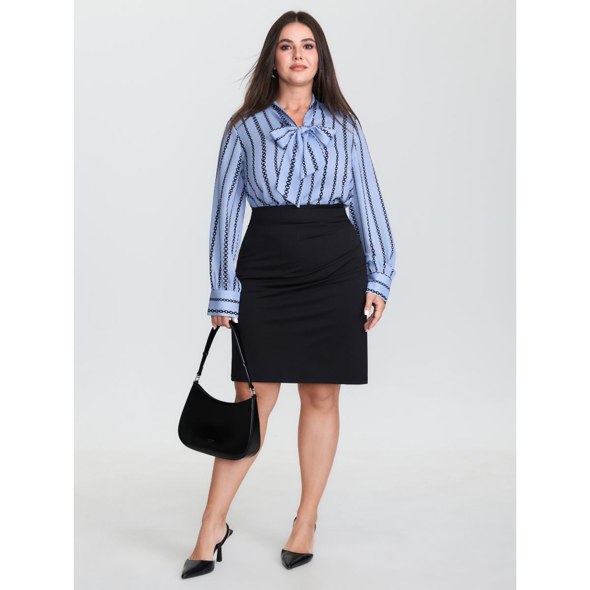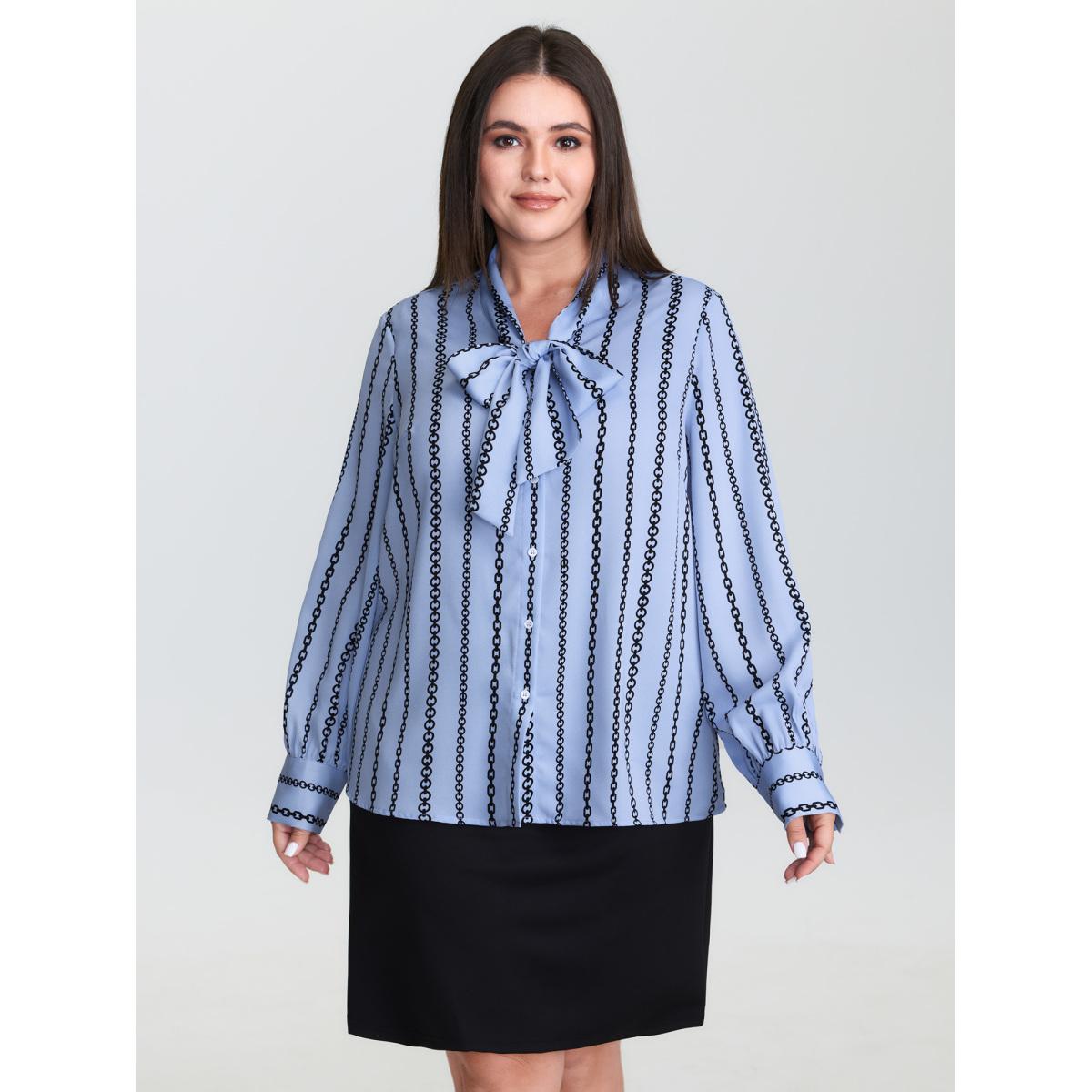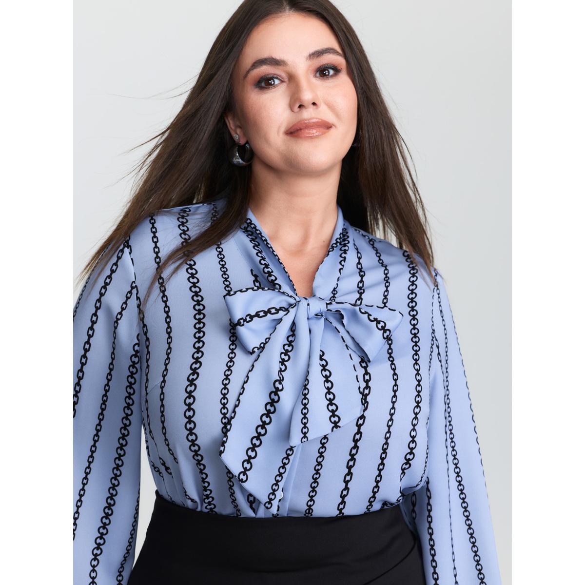 Plus Size LightBlue Loop Striped Bow-Tie Neckline Blouse Women Office Long Sleeve Ribbon-tied collar Office Blouses BloomChic 28/5X