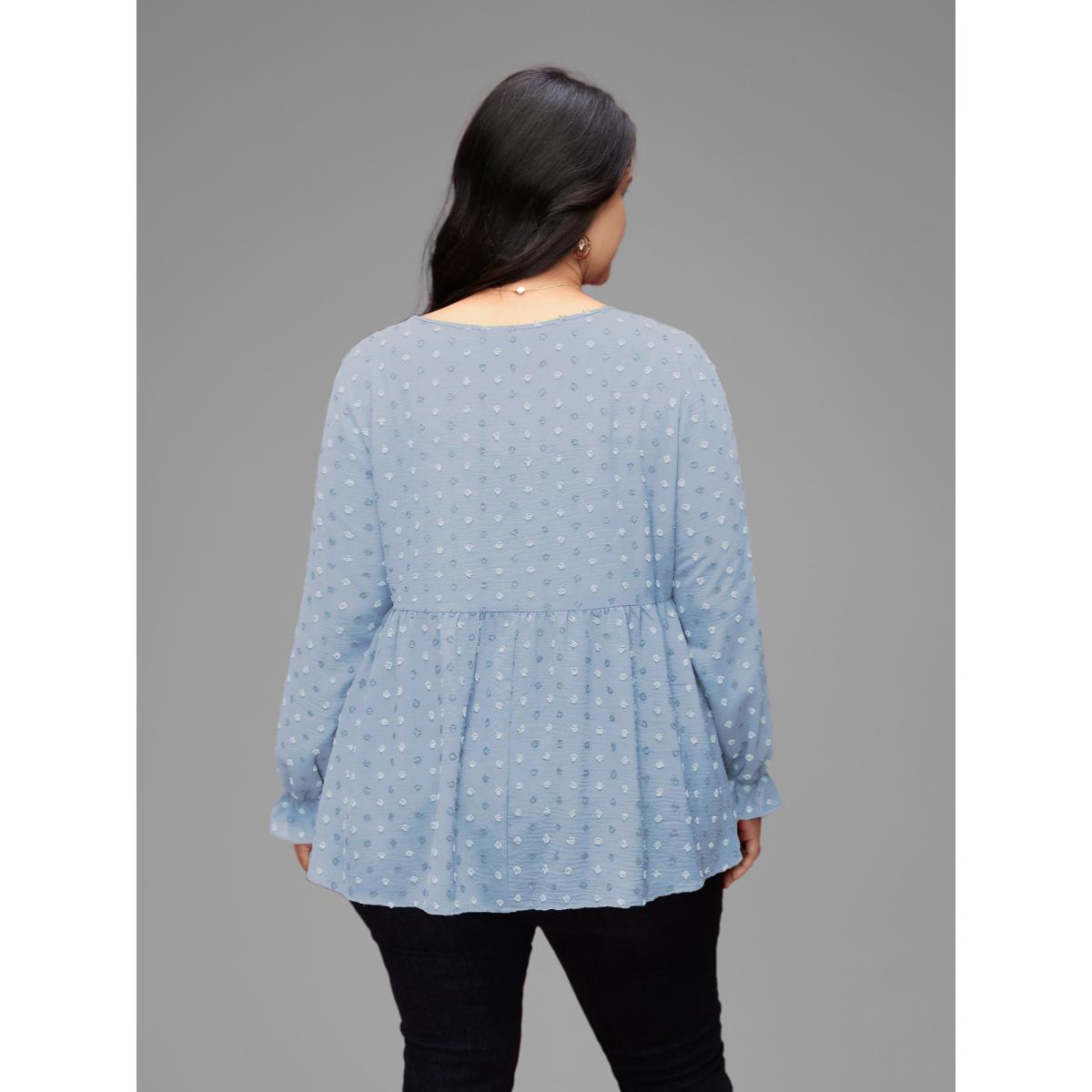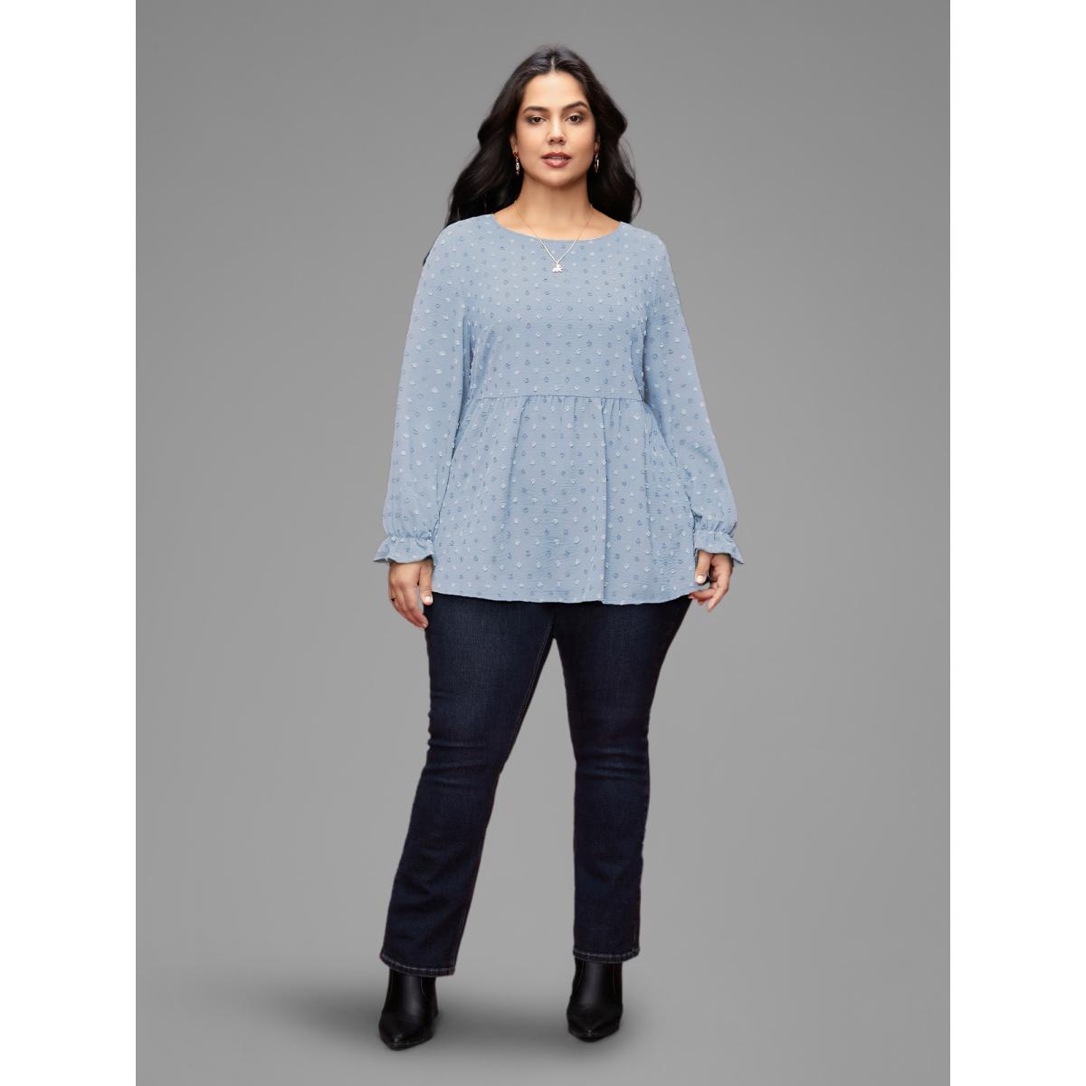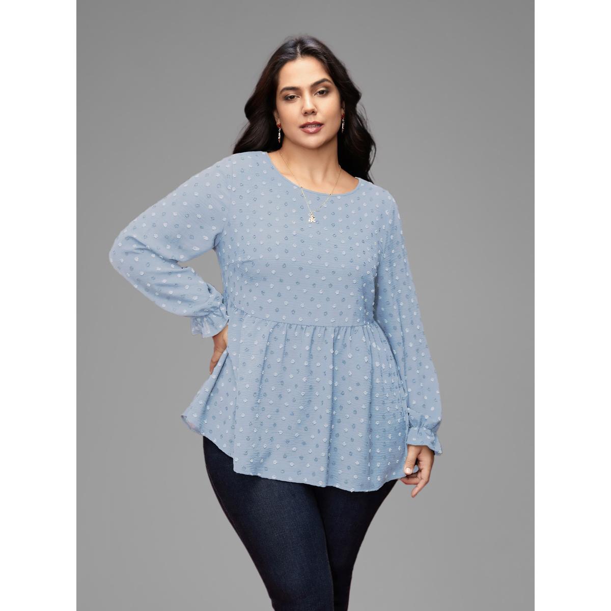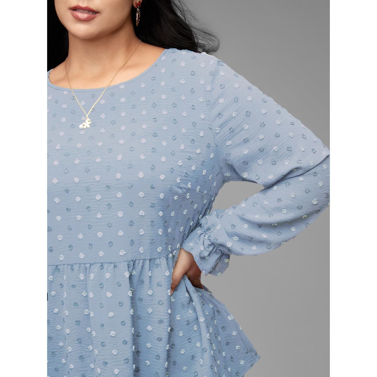 Plus Size LightBlue Textured Dot Elastic Cuffs A-line Blouse Women Leisure Long Sleeve Round Neck Casual Blouses BloomChic 28/5X