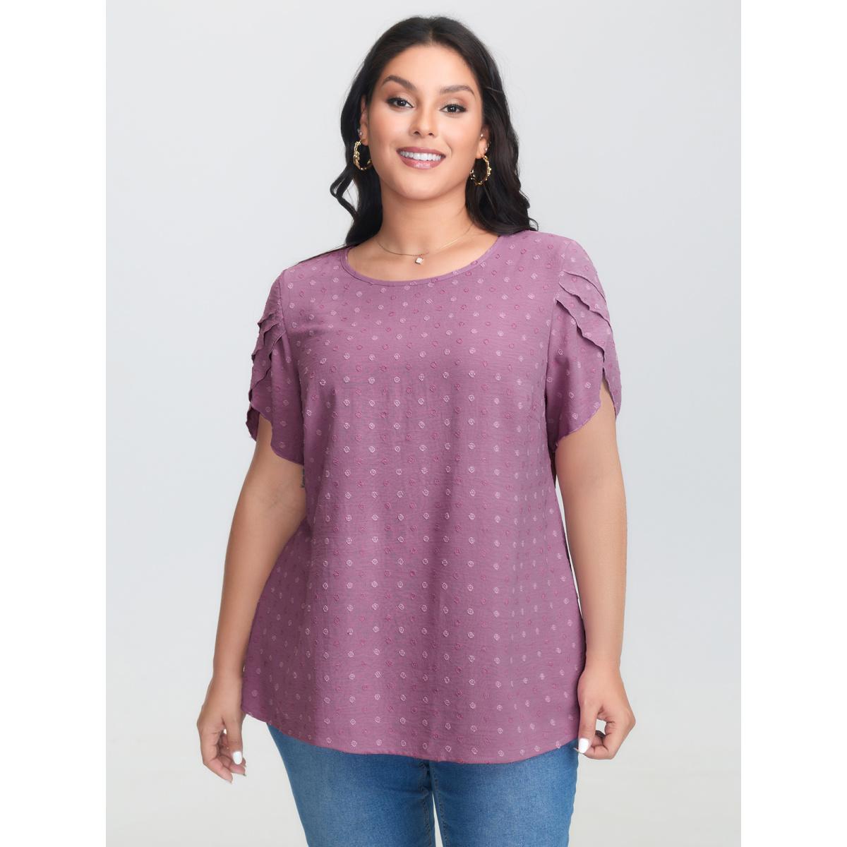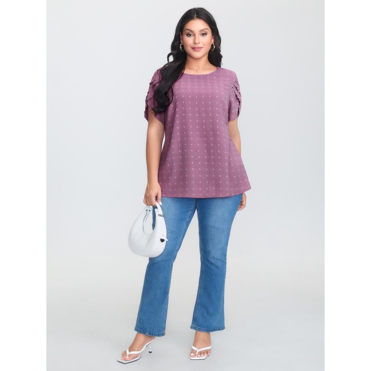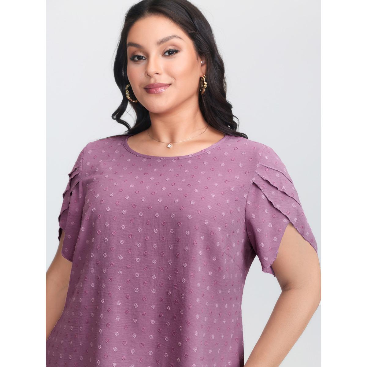 Plus Size Lilac Textured Color Contrast Petal Sleeve Blouse Women Timeless Short sleeve Round Neck Elegant Blouses BloomChic 18-20/2X