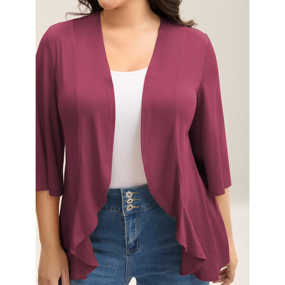 Plus Size Lotus Hem Curvy Kimono Cover-Up Women Burgundy Leisure Plain Casual Kimonos BloomChic 10/M Product Image
