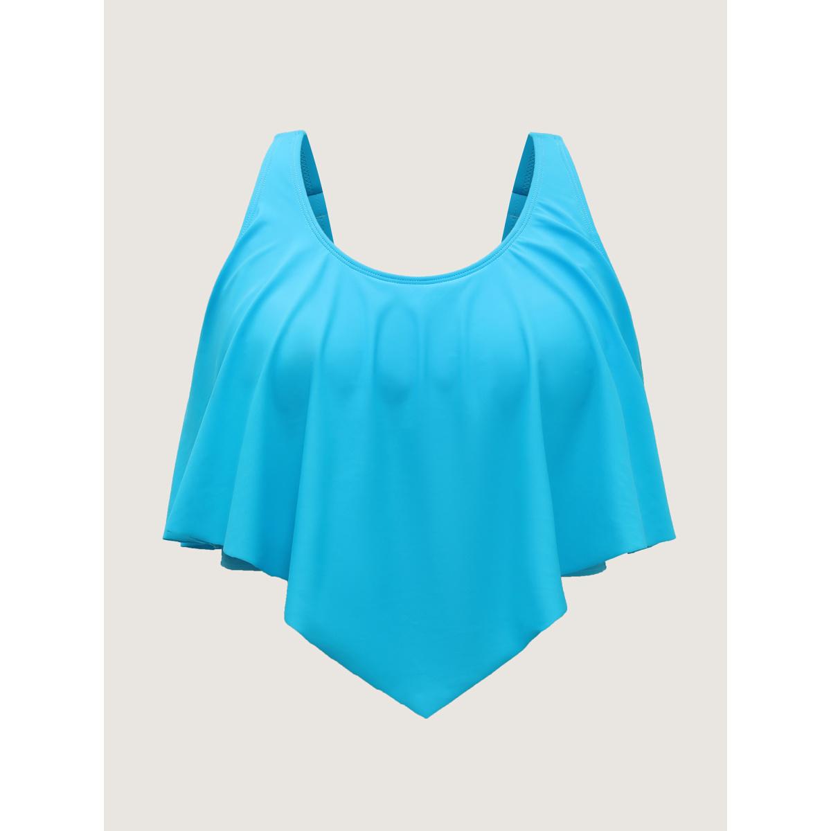 Plus Size Lotus Leaf Design Flowy Swim Top Women's Swimwear Arctic Resort Ruffles High stretch Bodycon U-neck Curve Swim Tops BloomChic 26/4X