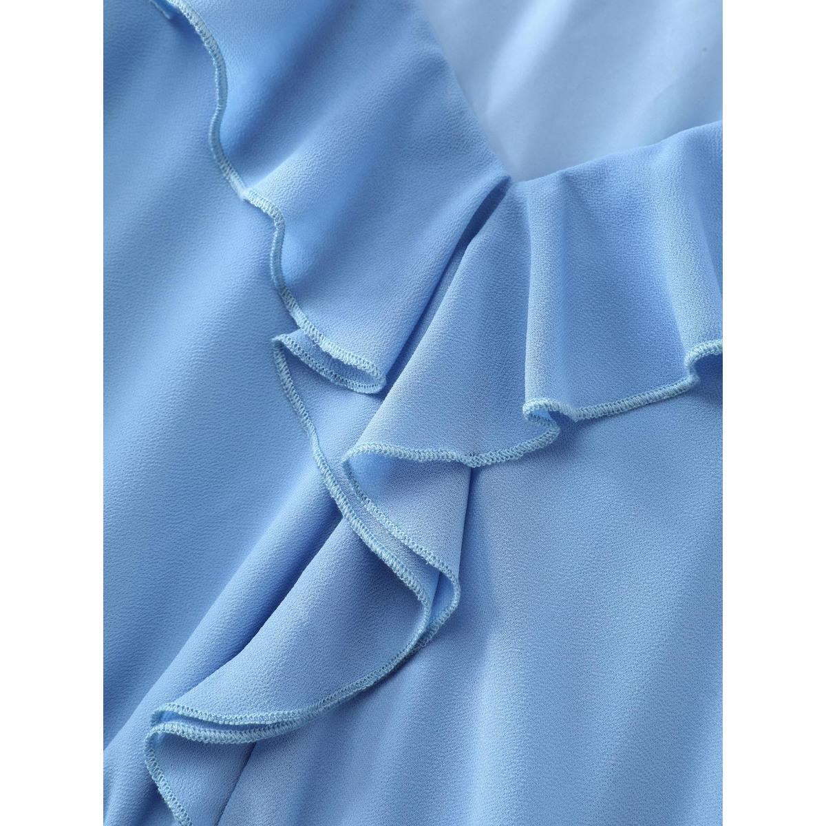 Plus Size Lotus Leaf Neckline Layered Midi Dress LightBlue Women Romantic See through V-neck Long Sleeve Curvy BloomChic 10/M Product Image