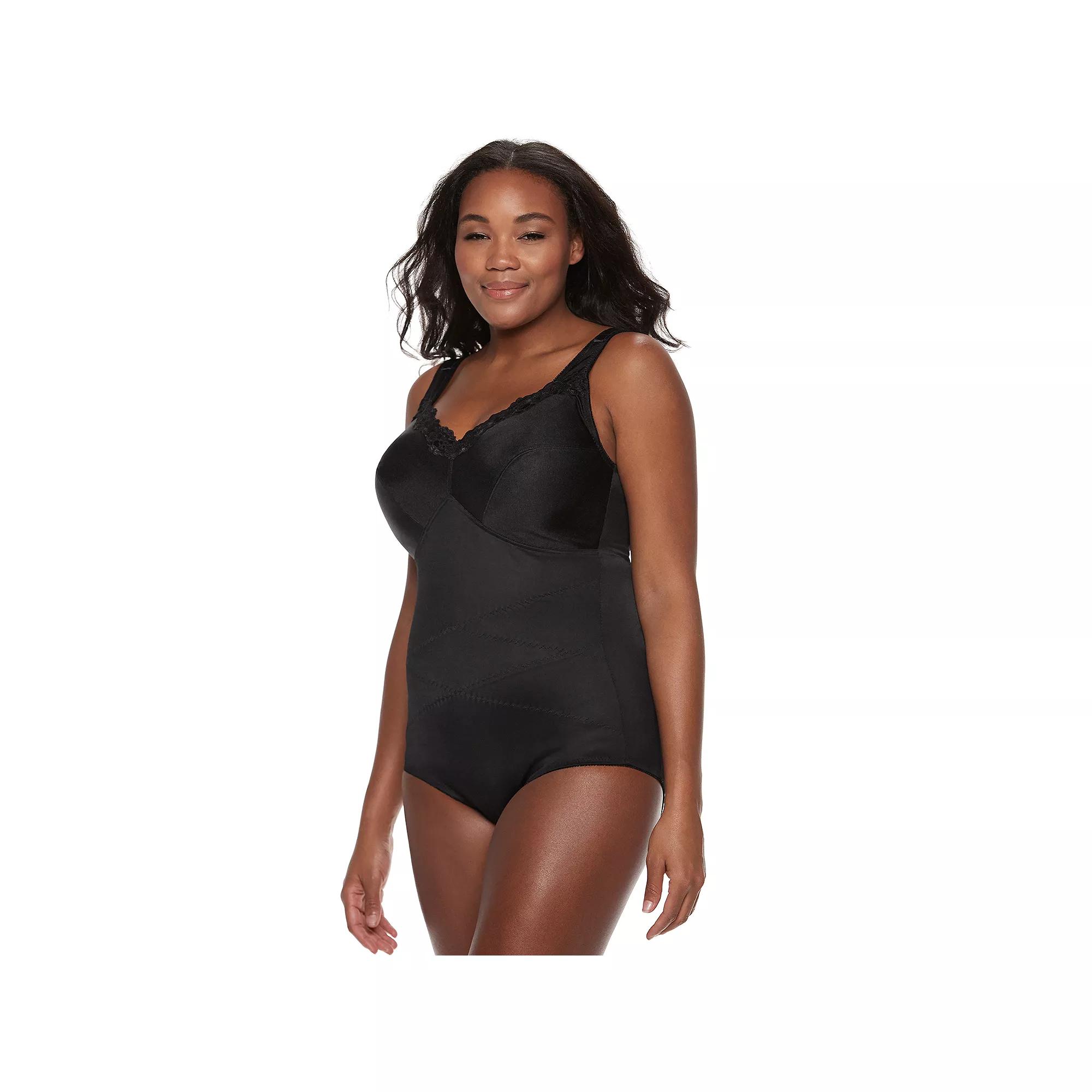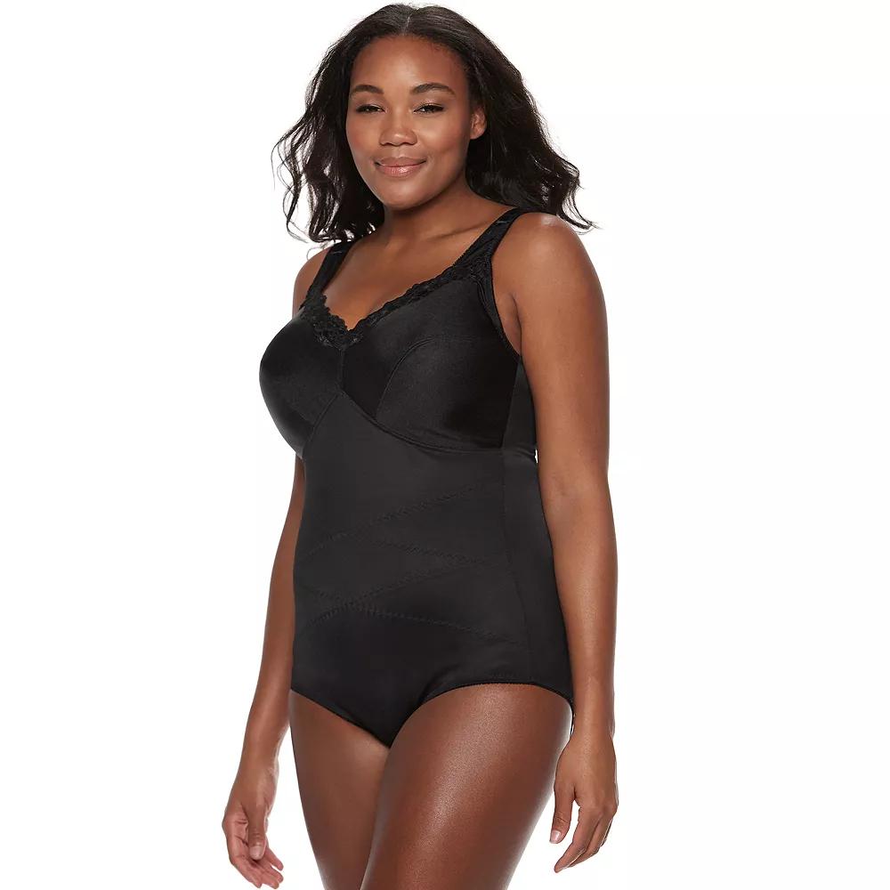 Firm control body briefer with criss-cross reinforced design to slim the tummy, waist and midriff. Back design reduces the strain and gives extra support. Two section cups provide comfortable support for fuller figures. Lace trim unlined cups. Wire free Cotton lined crotch has adjustable hook and eye closure. Control level: firm Style no. 3450KX FIT AND SIZE Adjustable shoulder straps CONSTRUCTION AND CARE Nylon, spandex, cotton Machine wash - delicate Imported Size: 38 D. Color: Black. Gender: female. Age Group: adult.