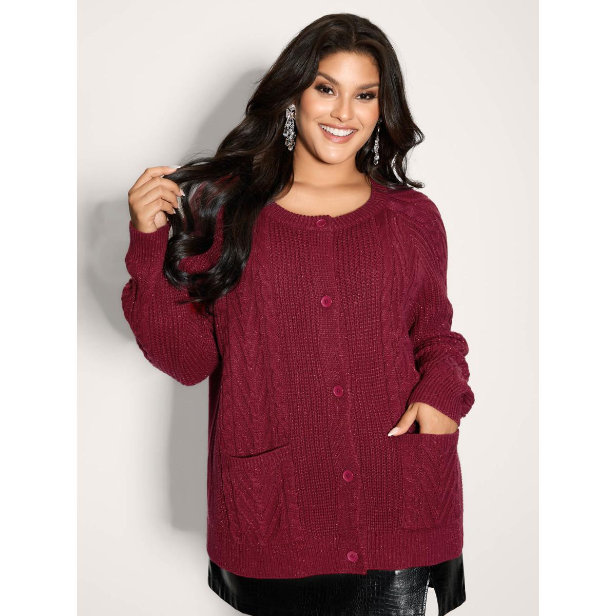 Plus Size Lurex Twist Button Knit Cardigan Scarlet Women Leisure Loose Long Sleeve Casual Cardigans BloomChic 28/5X