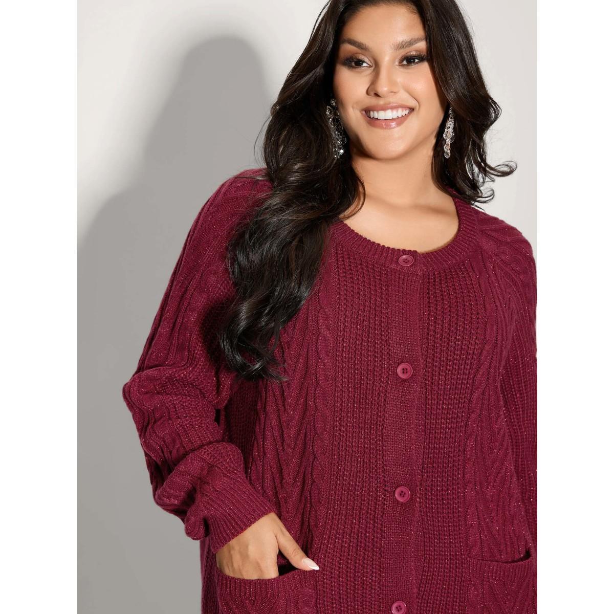 Plus Size Lurex Twist Button Knit Cardigan Scarlet Women Leisure Loose Long Sleeve Casual Cardigans BloomChic 28/5X Product Image