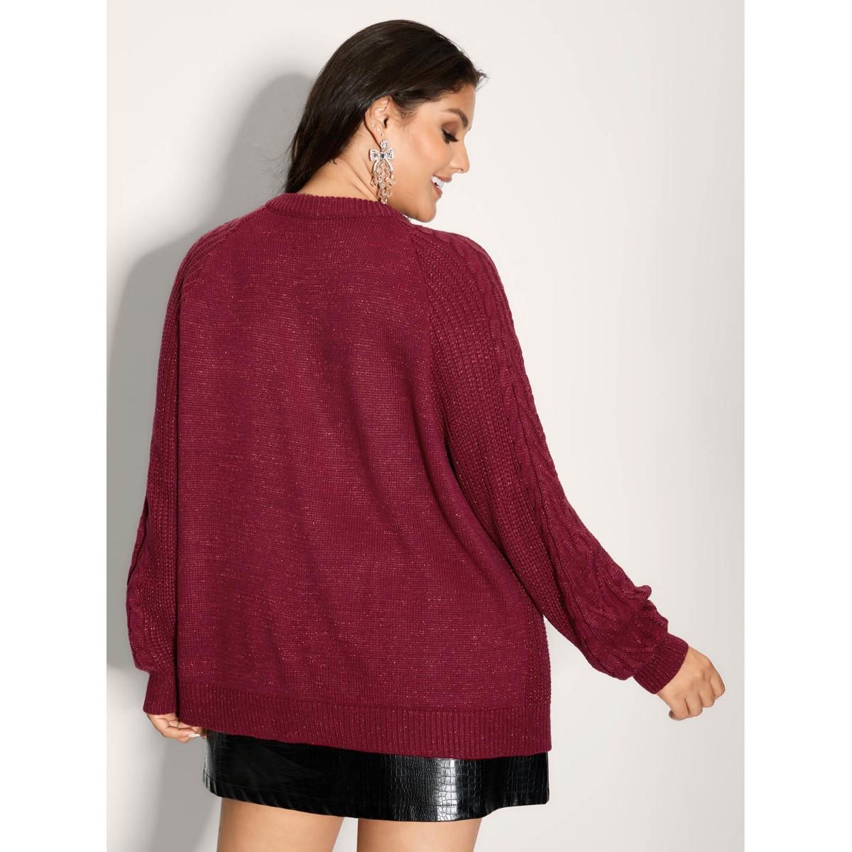 Plus Size Lurex Cable Knit Drop Shoulder Cardigan Black Women Casual Loose Long Sleeve Dailywear Cardigans BloomChic 30/6X