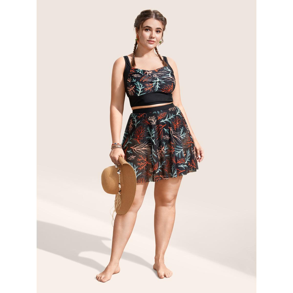 Plus Size Marine Elements See Through Elastic Waist Swim Bottom Women's Swimwear Black Beach See through High stretch Skinny High Rise Curve Swim Bottoms BloomChic 26/4X