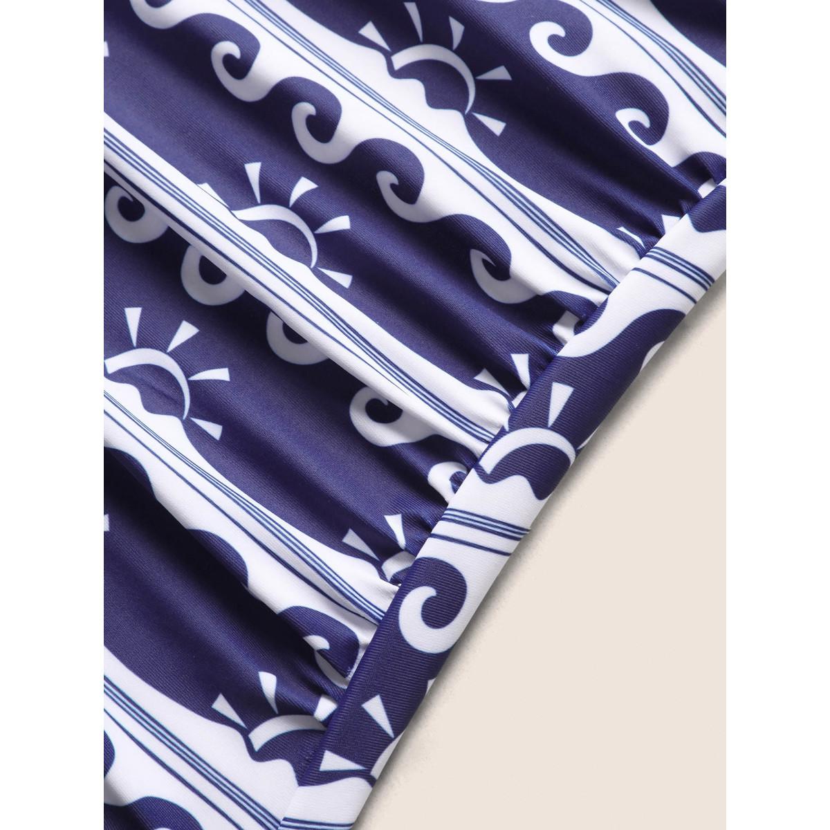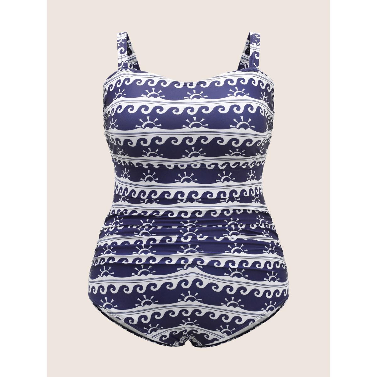Plus Size Marine Elements U Neck Gathered One Piece Swimsuit Women's Swimwear Indigo Beach Gathered Curve Bathing Suits High stretch One Pieces BloomChic 10/M