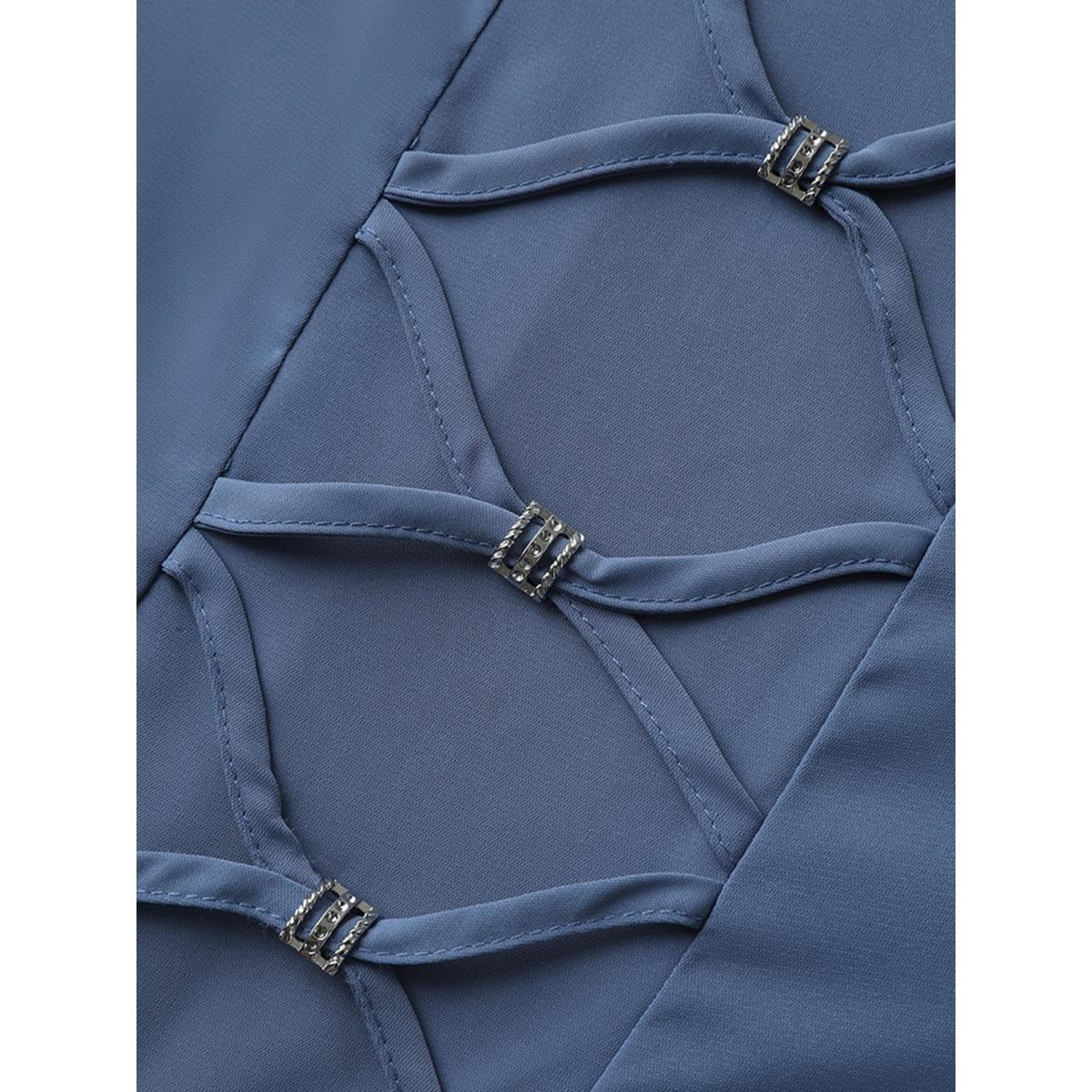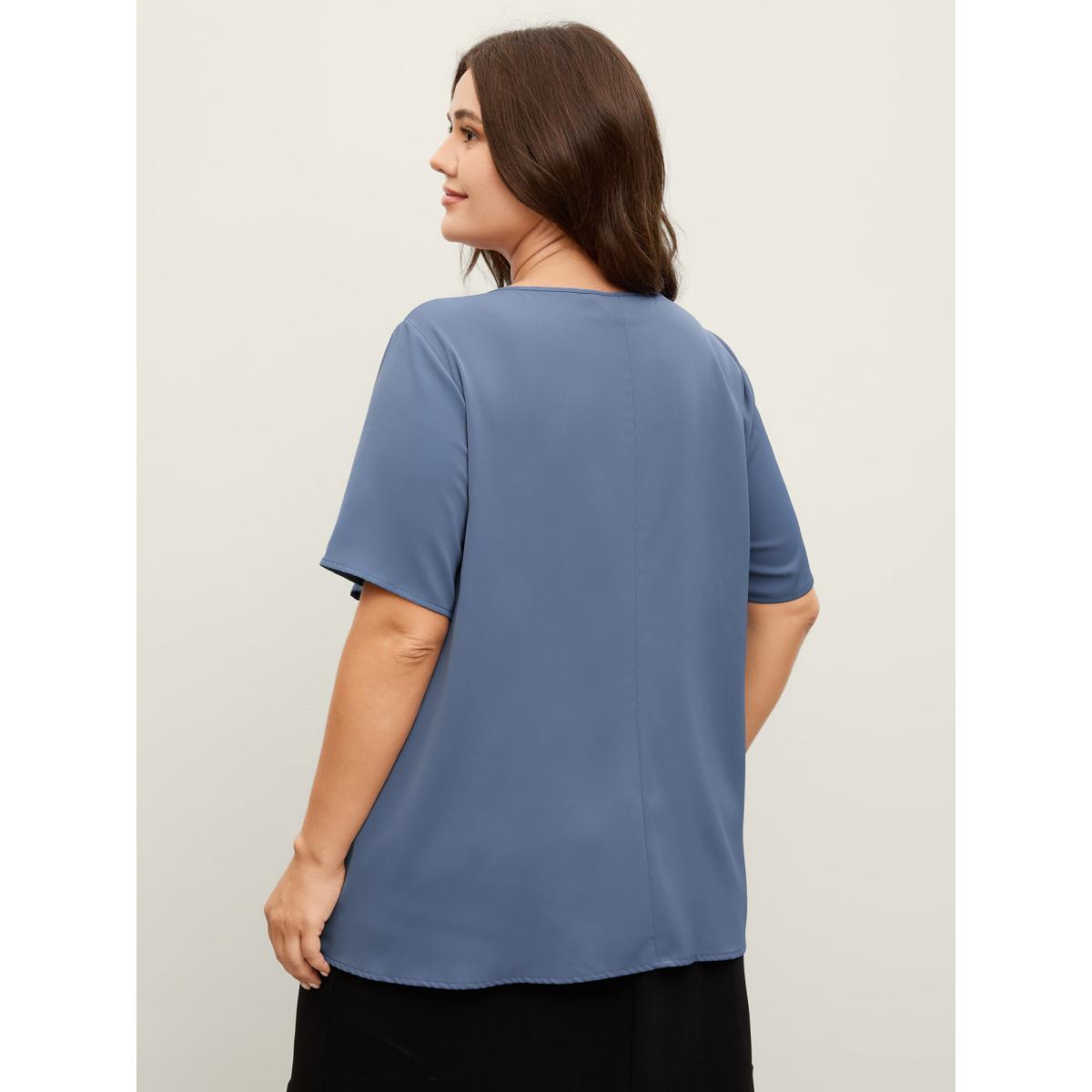 Plus Size Indigo Solid Crisscross Notched Metal Decor Blouse Women Office Short sleeve Notched collar Office Blouses BloomChic 26/4X
