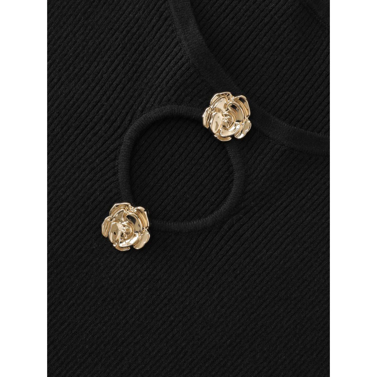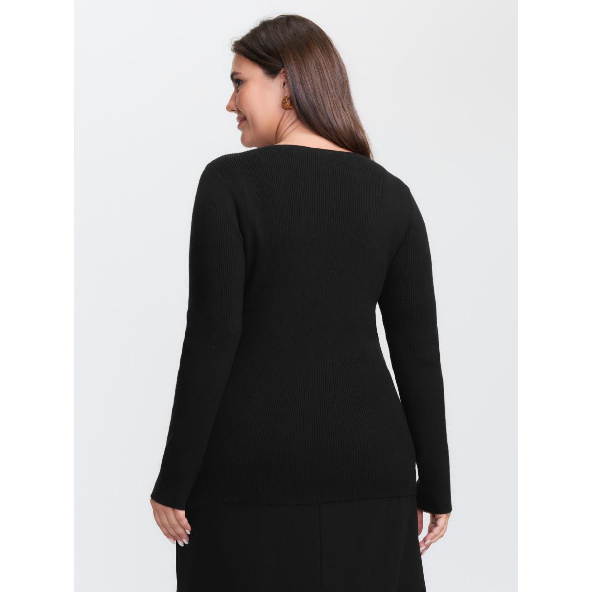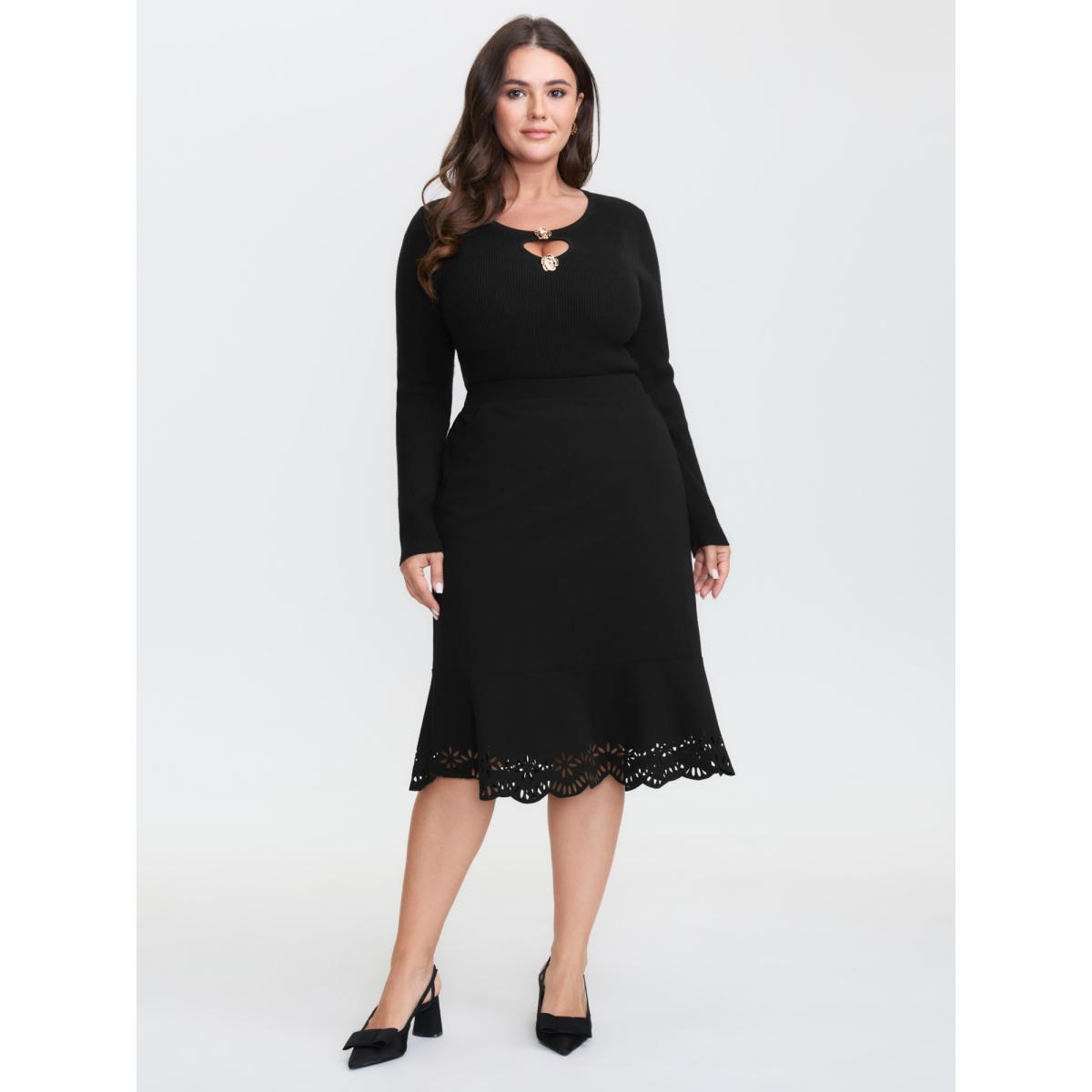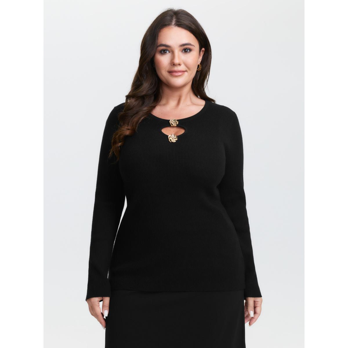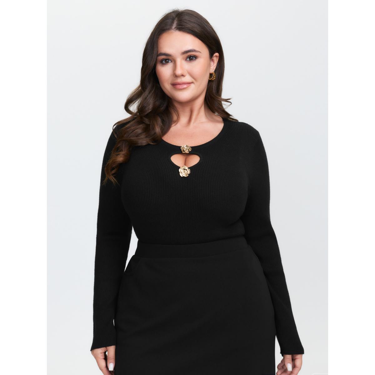 Plus Size Metallic Floral Detail Cut-Out Pullover Black Women Timeless Loose Long Sleeve Round Neck Elegant Pullovers BloomChic 14-16/1X