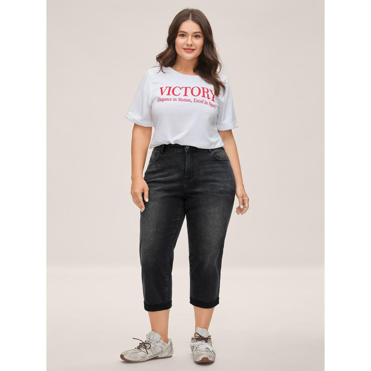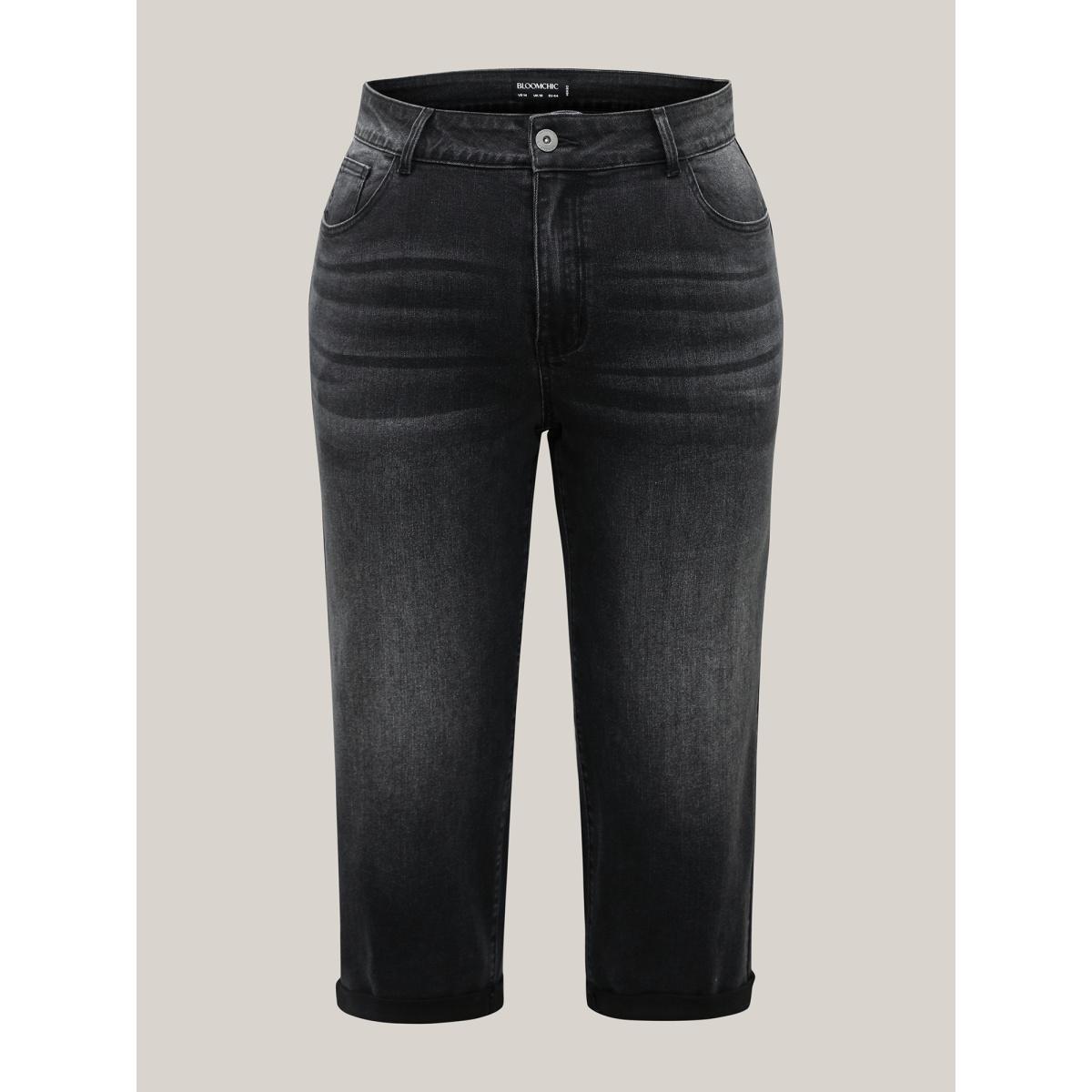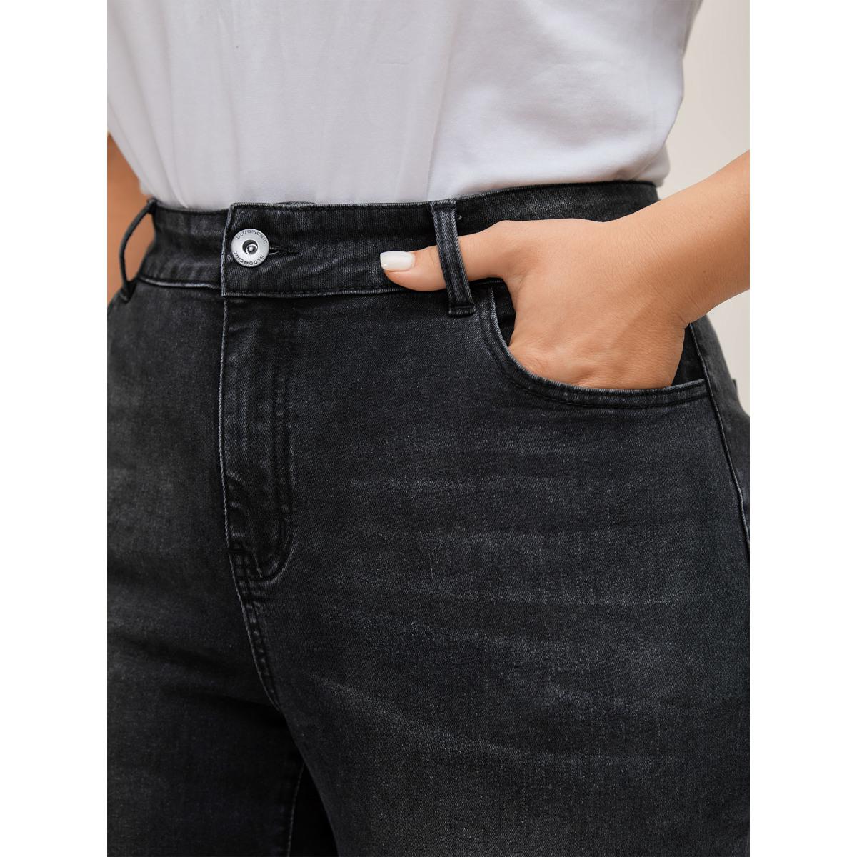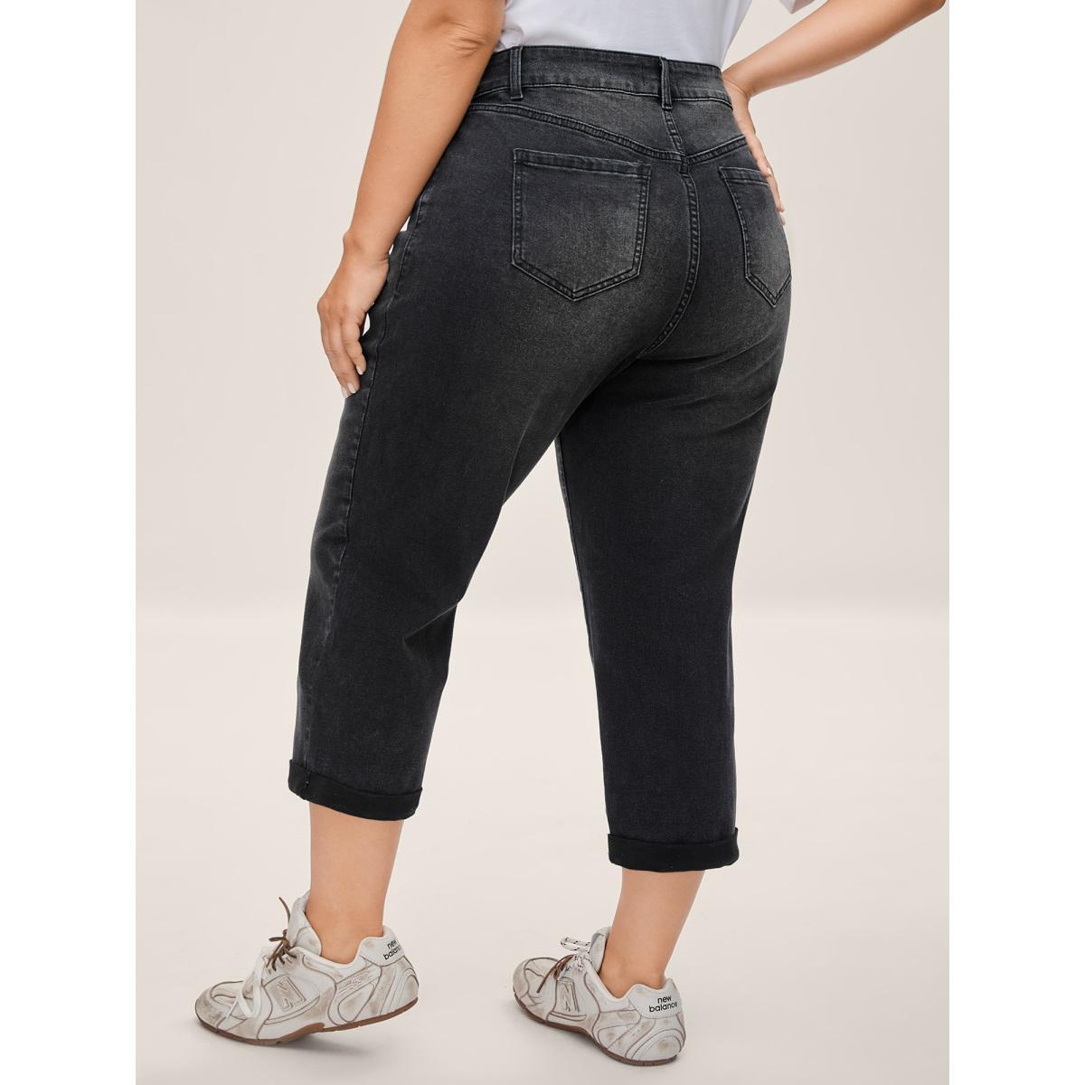 Plus Size Mid Rise Boyfriend Jeans Women Denimcharcoal Medium stretch Slanted pocket Jeans BloomChic 14/1X