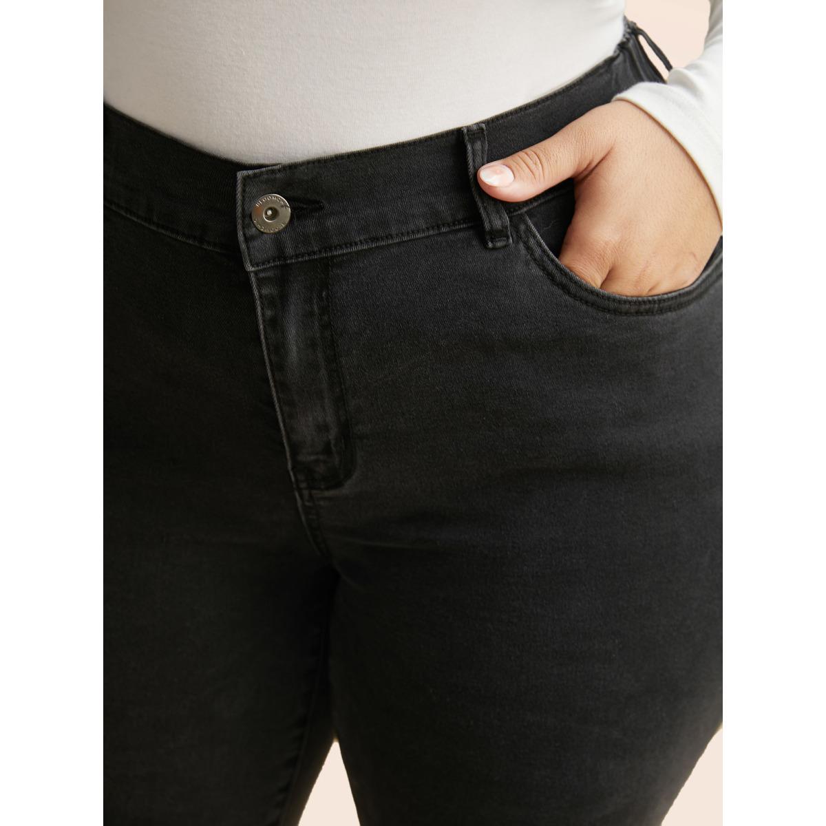Plus Size Whiskered Mid-Rise Skinny-Fit Jeans Women Denimcharcoal Elegant Button Medium stretch Slanted pocket Jeans BloomChic 30/6X