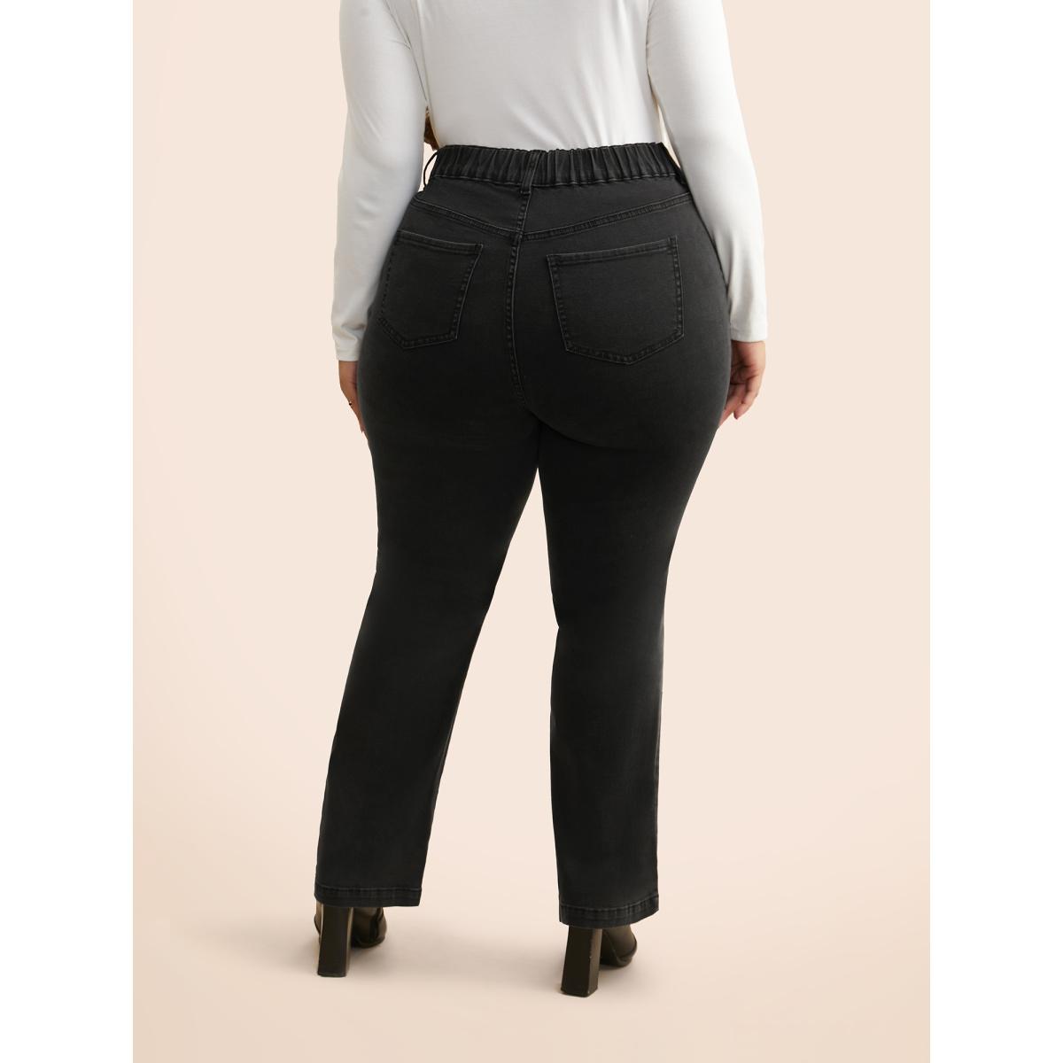 Plus Size Bootcut Very Stretchy Mid Rise Medium Wash Sculpt Waist Jeans Women Darkindigo Timeless Plain Non High stretch Slanted pocket Jeans BloomChic 30/6X