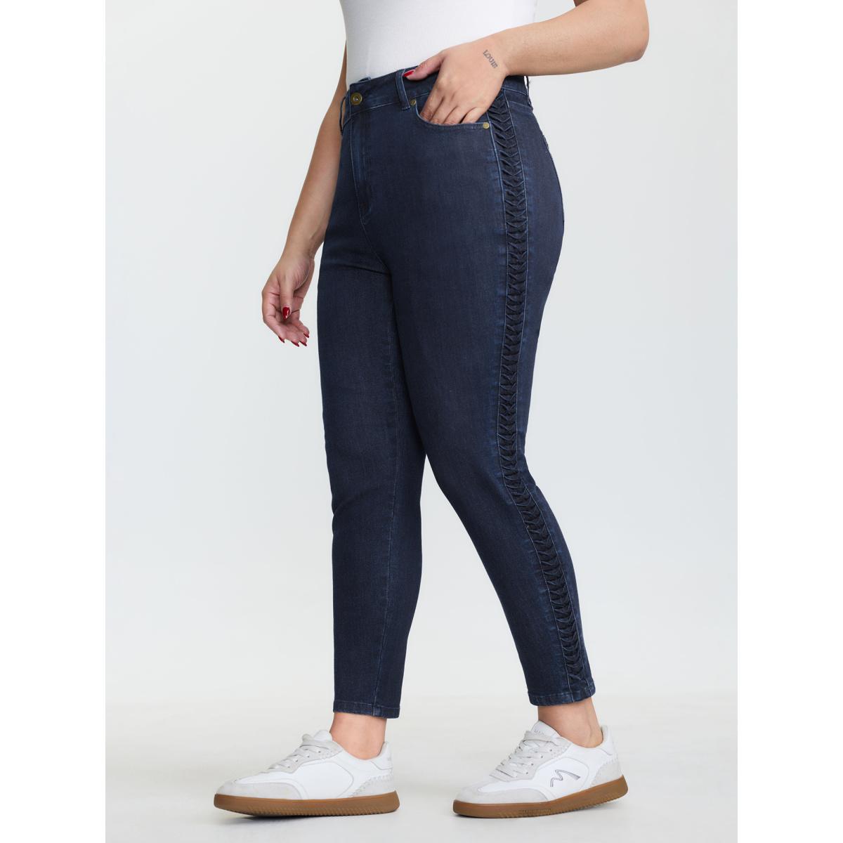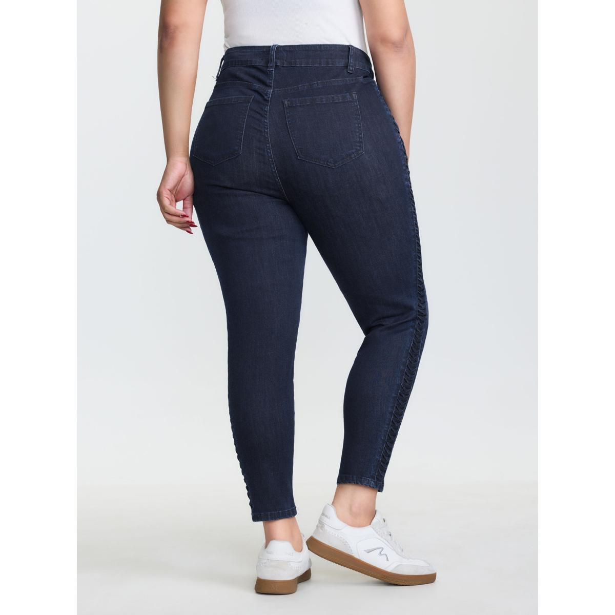 Plus Size Mid-Rise Ruched Side Skinny-Fit Jeans Women Darkindigo Leisure Topstitching High stretch Slanted pocket Jeans BloomChic 28/5X