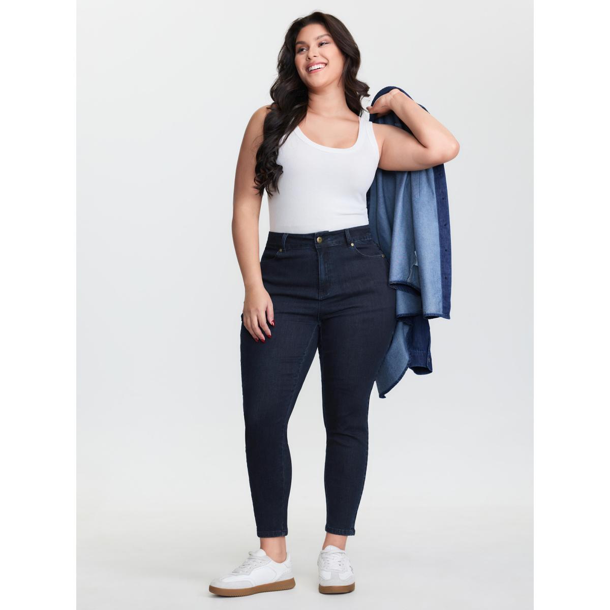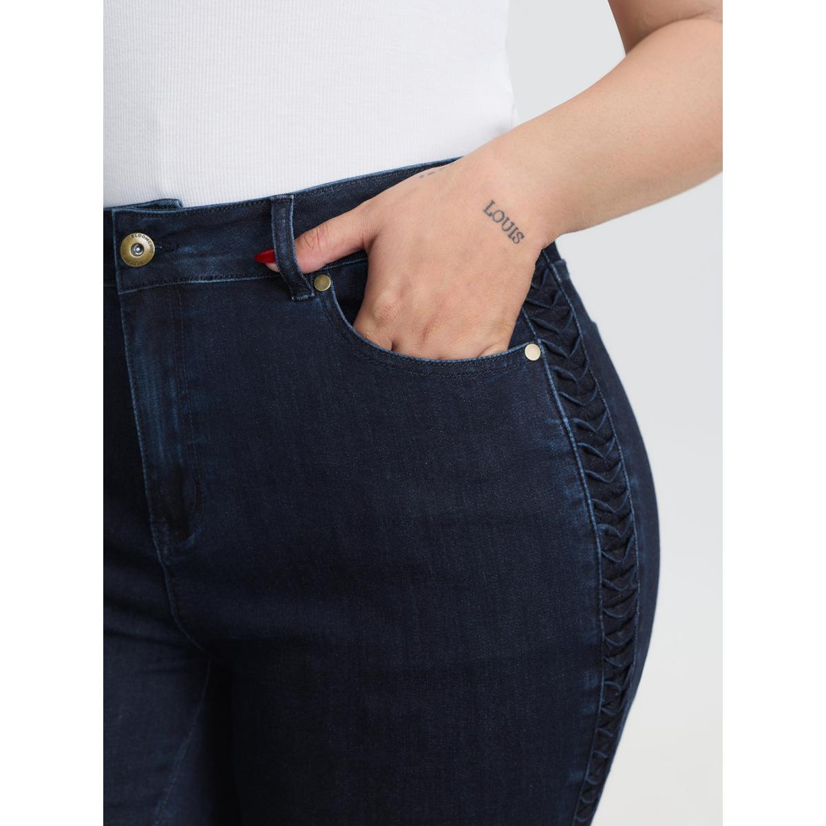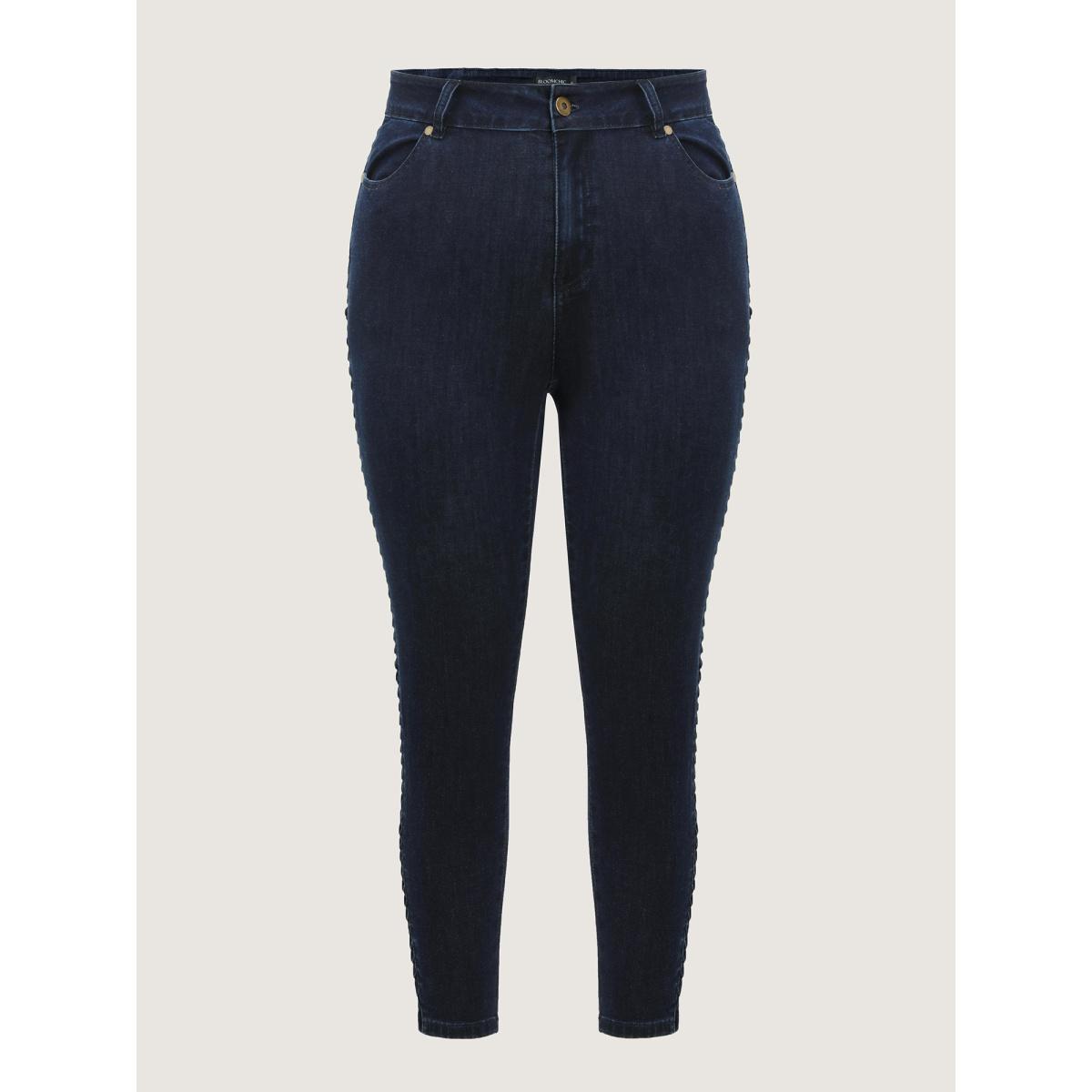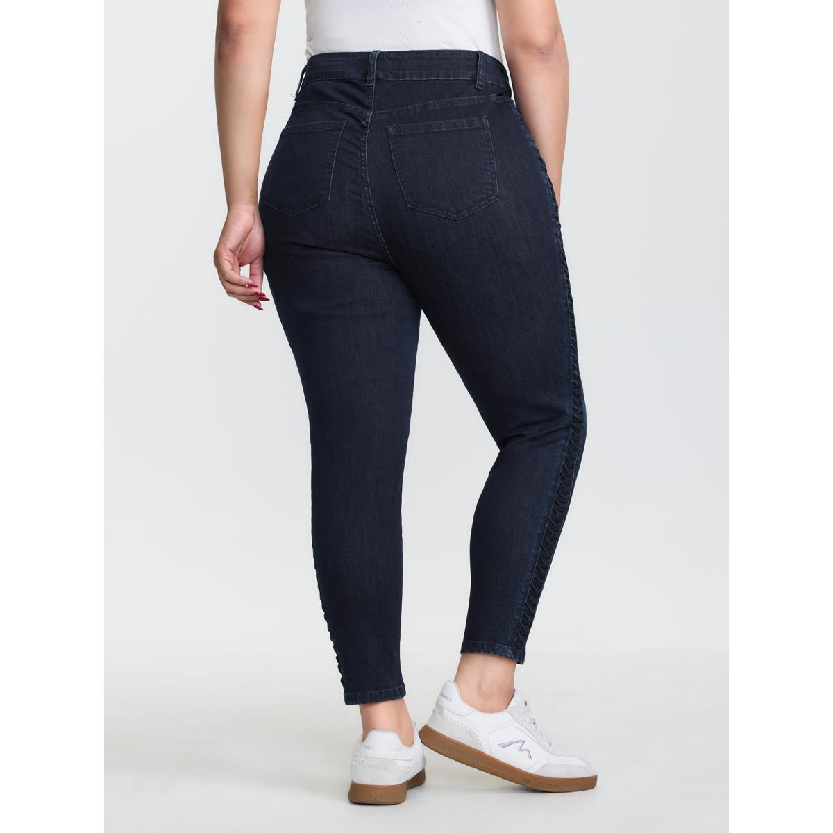 Plus Size Mid-Rise Ruched Side Skinny-Fit Jeans Women Darkindigo Leisure Topstitching High stretch Slanted pocket Jeans BloomChic 20/2X