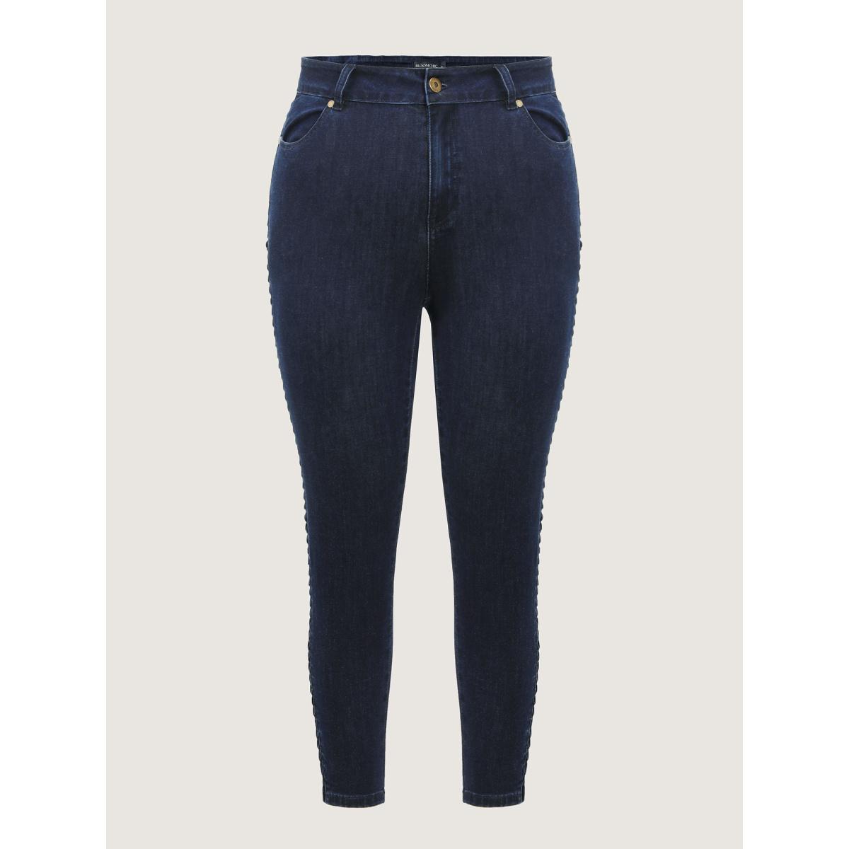 Plus Size Very Stretchy High Rise Dark Wash Cropped Jeans Women Blue Leisure Plain Roll Hem High stretch Slanted pocket Jeans BloomChic 14/1X