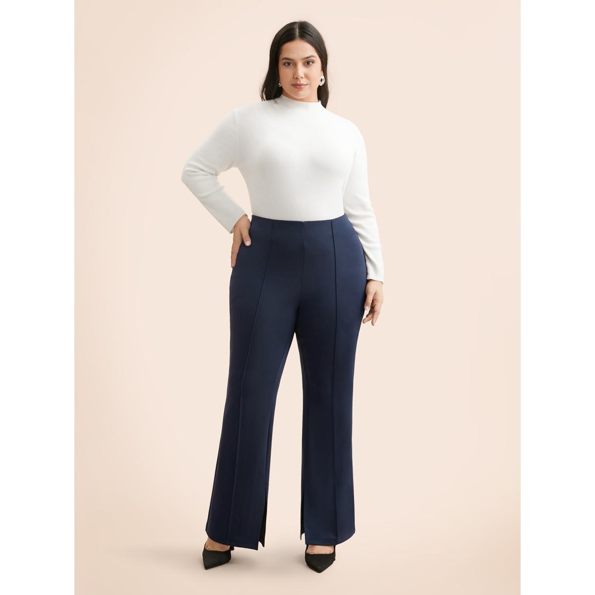 Plus Size Side Slit Plain Bootcut Pants Women Black Workwear Essentials Bodycon Mid Rise Office Pants BloomChic 10/M