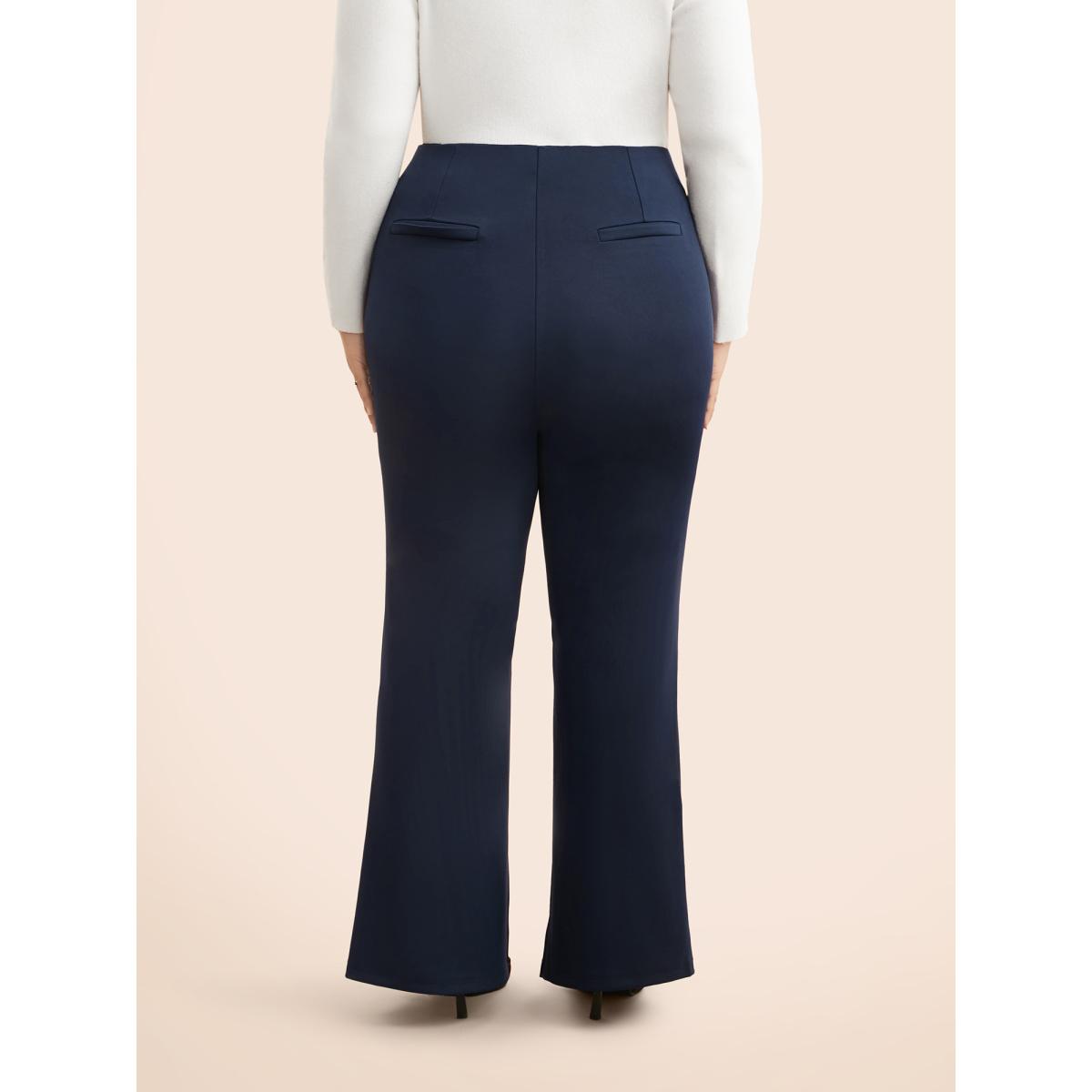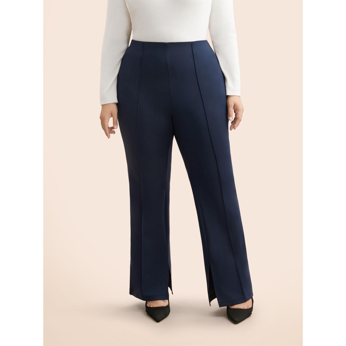 Plus Size Mid Rise Slit Hem Bootcut Pants Women Indigo Casual Bootcut Mid Rise Everyday Pants BloomChic 14-16/1X
