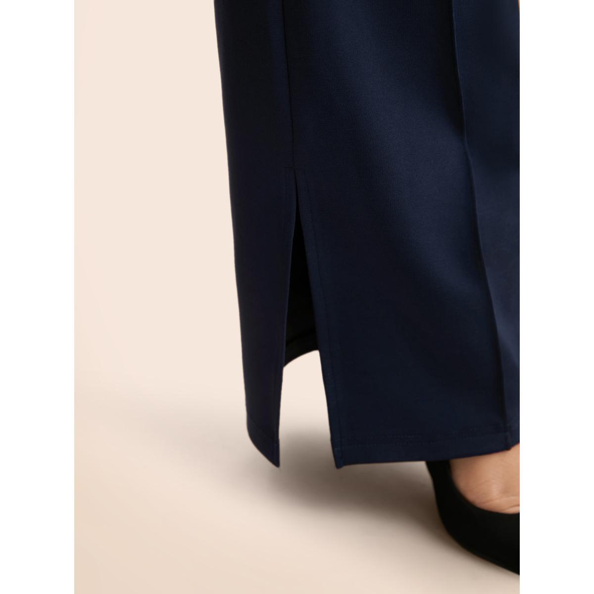 Plus Size Plain Skinny Split Hem Pocket Pants Women Indigo Office High stretch Skinny High Rise Office Leggings BloomChic 10/M