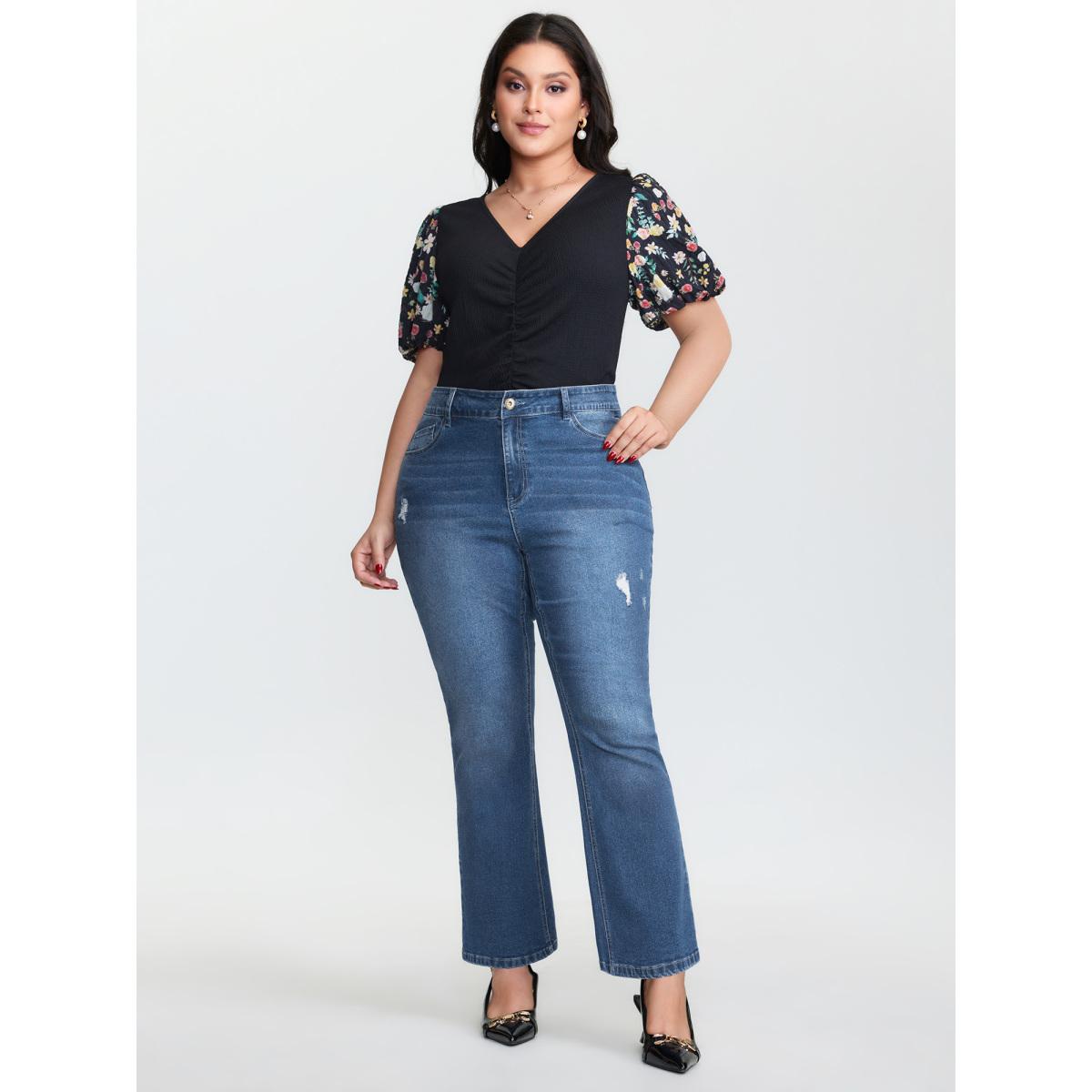 Plus Size Mid-Rise Vintage Bootcut Jeans Women Bluevintage Timeless High stretch Slanted pocket Jeans BloomChic 20/2X